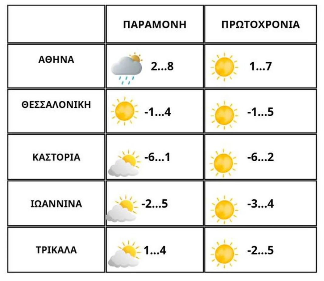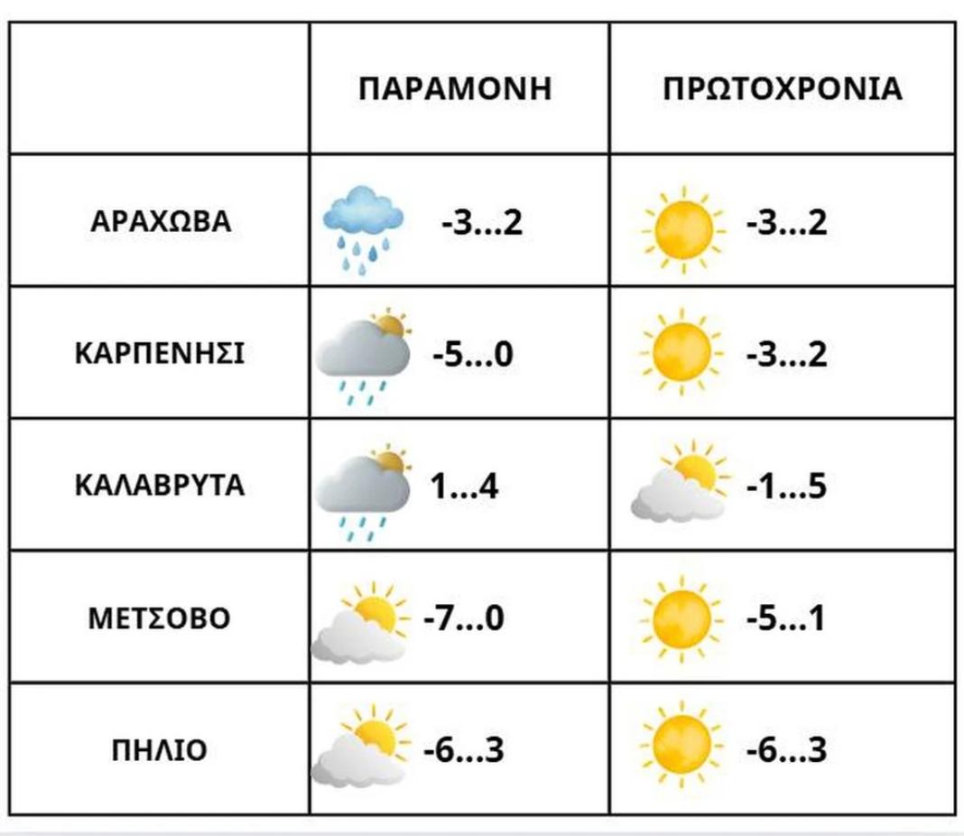 Ο καιρός την Πέμπτη 01-01-2026 (Πρωτοχρονιά)