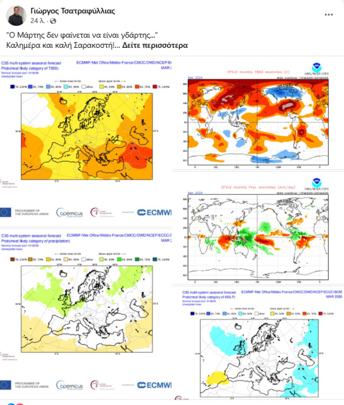 Τι λένε όμως οι εποχικές προγνώσεις για τον μήνα Μάρτιο;