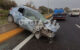 Όπως φαίνεται και στην εικόνα του Creta24, το αυτοκίνητο κατέληξε… σκαρφαλωμένο στο διαχωριστικό στηθαίο.