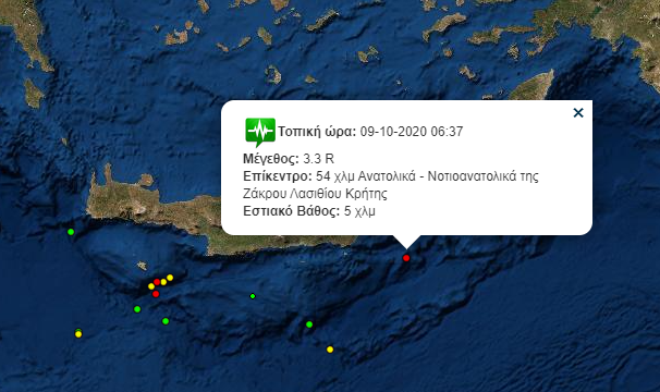 Το επίκεντρο του σεισμού εντοπίζεται 54 χλμ Ανατολικά – Νοτιοανατολικά της Ζάκρου, ενώ το εστιακό του βάθος υπολογίζεται στα 5 χλμ.
