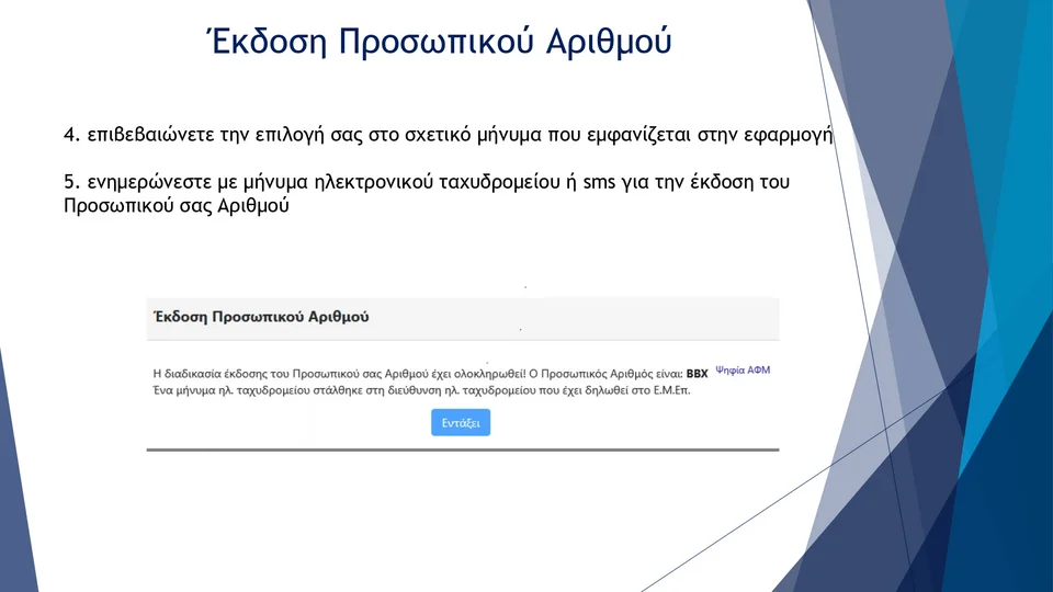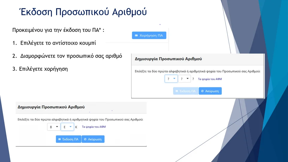 Τα βήματα για την έκδοση Προσωπικού Αριθμού σε εικόνες: