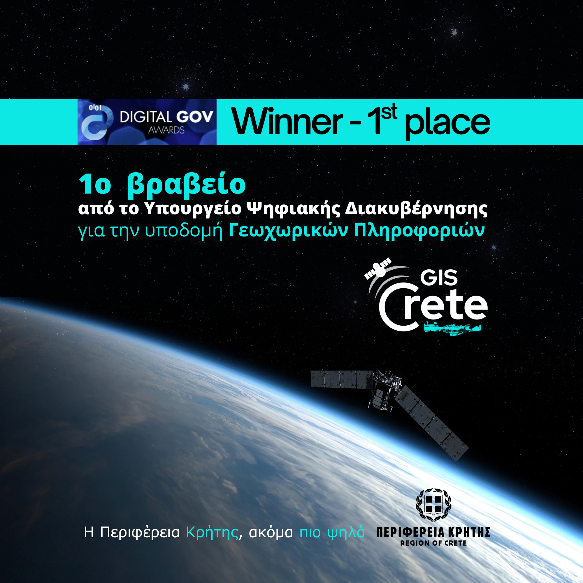 Την κορυφαία διάκριση στην κατηγορία «Καλύτερη Εφαρμοσμένη Ιδέα» απέσπασε η Περιφέρεια Κρήτης στα Βραβεία του Υπουργείου Ψηφιακής Διακυβέρνησης 2025, για την καινοτόμο Υποδομή Γεωχωρικών Πληροφοριών GIS Crete. Πρόκειται για την πρώτη ολοκληρωμένη εφαρμογή αυτού του είδους σε ελληνική Περιφέρεια, η οποία συνδυάζει πρωτογενή δεδομένα των υπηρεσιών με δορυφορικές πληροφορίες του ευρωπαϊκού προγράμματος Copernicus, αξιοποιώντας παράλληλα σύγχρονες πρακτικές ανοιχτών δεδομένων.