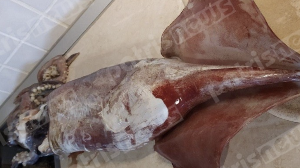 Το θράψαλο βάρους 6 κιλών, κάποιοι είπαν ότι είναι καλαμάρι, θα γίνει την κατάλληλη στιγμή ένας υπέροχος ουζομεζές.