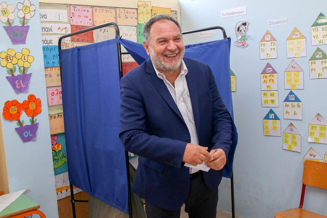 Στη γειτονιά του στα Καμίνια άσκησε το εκλογικό του δικαίωμα ο Γιάννης Κουράκης.