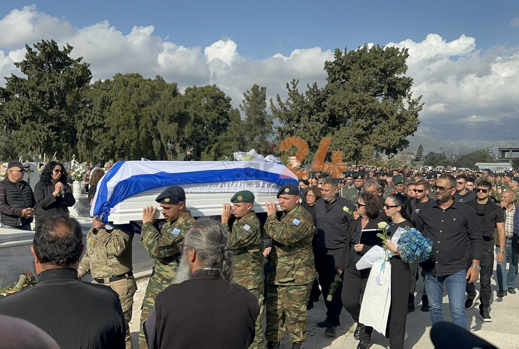 Συγγενείς και φίλοι συνόδευσαν σήμερα τον άτυχο Ραφαήλ στην τελευταία του κατοικία. Συγκλονιστική στιγμή όταν το φέρετρο με τη γαλανόλευκη έφτασε στον ιερό ναό του Αγίου Τίτου, με τον κόσμο να ξεσπά σε χειροκροτήματα.