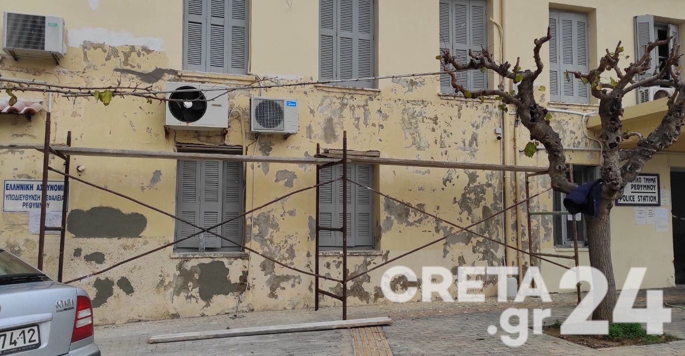 Ξεκίνησαν σήμερα οι εργασίες συντήρησης της πρόσοψης του Αστυνομικού Μεγάρου Ρεθύμνου.