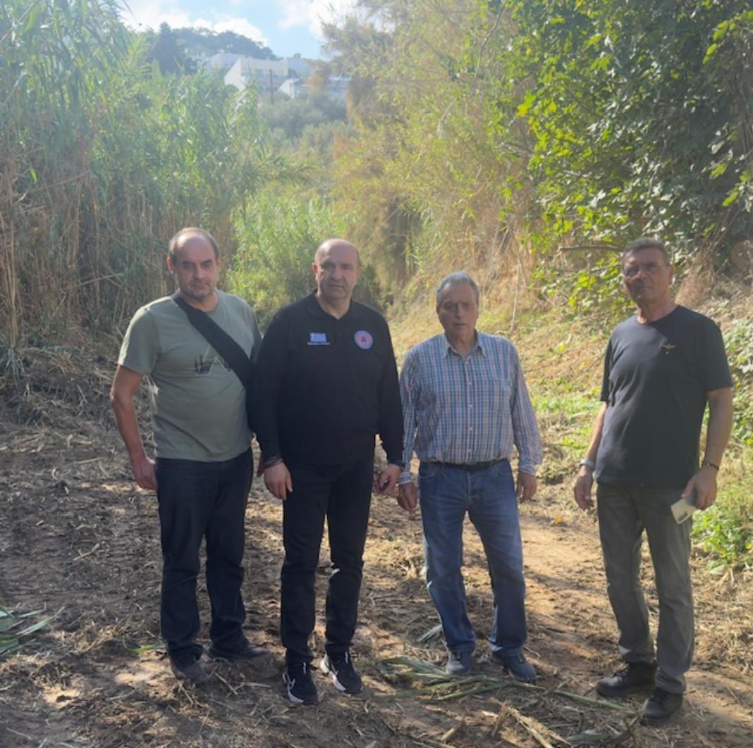 Ο Εντεταλμένος Περιφερειακός Σύμβουλος Πολιτικής Προστασίας Π.Ε. Ρεθύμνης κ. Μιχάλης Σαρρής, ο Αντιδήμαρχος Πολιτικής Προστασίας του Δήμου Ρεθύμνης κ. Γιώργος Σκορδίλης, ο Προέδρος της Δημοτικής Κοινότητας Ρεθύμνης κ. Ιάκωβος Διακουμάκης και ο Αναπληρωτής Προϊστάμενος του Τμήματος Πολιτικής Προστασίας Π.Ε Ρεθύμνης κ. Νίκος Βότσογλου πραγματοποίησαν επιτόπια παρακολούθηση των εργασιών καθαρισμού και των παρεμβάσεων που υλοποιούνται στις κοίτες των ρεμάτων εντός και εκτός του αστικού ιστού του Ρεθύμνου, στο πλαίσιο της ενίσχυσης της αντιπλημμυρικής προστασίας.