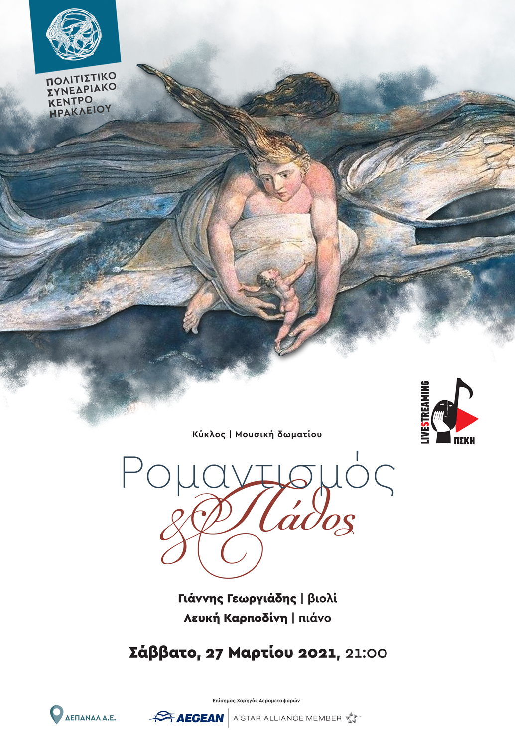 Ρομαντισμός και Πάθος: δυο έννοιες – κλειδιά, στα χέρια του μουσικού που περιπλανάται, στο μεταίχμιο του 19ου με τον 20ο αιώνα. Οι δύο «βασιλείς των οργάνων», το βιολί και το πιάνο, συναντιούνται σε ένα καλειδοσκοπικό πρόγραμμα, με μουσικές μινιατούρες που μας ταξιδεύουν από την Ελλάδα μέχρι την Αργεντινή και από τη Ρωσία μέχρι την Ισπανία, μέσω Live Streaming από την επίσημη ιστοσελίδα του ΠΣΚΗ, https://www.cccc.gr/gr/live-streaming.