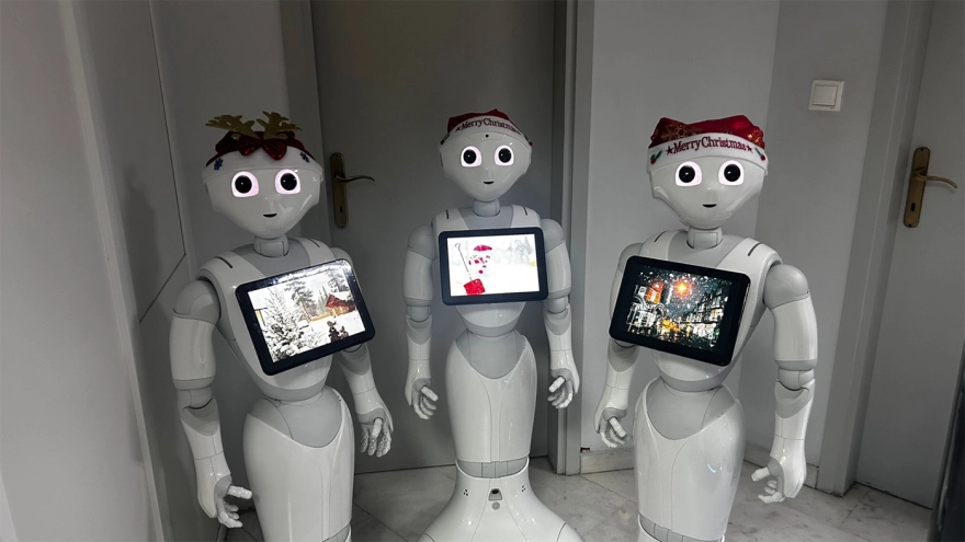 Ενώ η παρέα των θεσσαλονικιώτικων ρομπότ είναι έτοιμα να τα … πουν, κάποια άλλα έχουν αναλάβει διαφορετικούς ρόλους -πάντα σε πνεύμα γιορτών. «Είμαι ο Pepper, ο επίσημος ρομποτικός βοηθός του Αϊ-Βασίλη για την περίοδο των εορτών! Μην ανησυχείτε, ο αληθινός Αϊ-Βασίλης είναι στη θέση του, κάνει όλες τις προετοιμασίες και φορτώνει το έλκηθρο. Εγώ απλώς τον βοηθάω με τα τεχνολογικά».