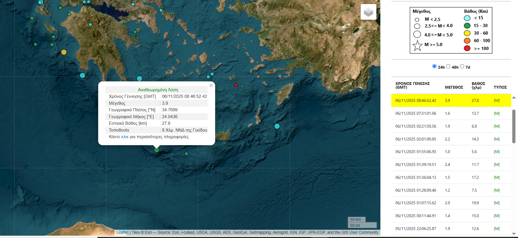 Το επίκεντρο του σεισμού, ο οποίος σημειώθηκε στις 10.46 π.μ., εντοπίζεται 8 χιλιόμετρα νοτιοδυτικά της Γαύδου.