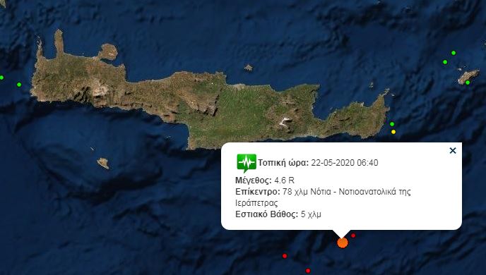 Σεισμική δόνηση έντασης 4,6 βαθμών σημειώθηκε στις 6:40 το πρωί στη θαλάσσια περιοχή νότια της Ιεράπετρας.