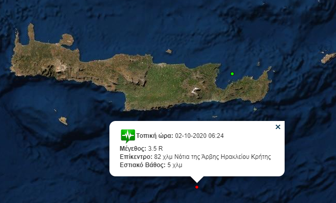 ΚΡΗΤΗΚΟΙΝΩΝΙΑ Σεισμός με το «καλημέρα» στην Κρήτη Παρασκευή 2 Οκτ 2020 | 08:56 FacebookTwitterViberWhatsAppEmailCopy URL Πρέπει να διαβάσετε Σεισμική δόνηση έντασης 3,5 βαθμών της κλίμακας Ρίχτερ σημειώθηκε στις 6:24 το πρωί νότια της Κρήτης. Το επίκεντρο του σεισμού εντοπίζεται 82 χλμ νότια της Άρβης, ενώ το εστιακό του βάθος υπολογίζεται στα 5 χλμ. ΕτικέτεςΔΗΜΟΦΙΛΗ Σχετικά άρθρα Οι κτηνοτρόφοι των Χανίων έδωσαν ραντεβού στον κόμβο των Μουρνιών Τρίτη 28 Οκτ 2025 | 19:40 “Μια σφαίρα στην καρδιά του στοίχισε τη ζωή” – Τι έδειξε η ιατροδικαστική εξέταση για το φονικό στο Έλος Κισσάμου Τρίτη 28 Οκτ 2025 | 19:12 Κρητικός επιστήμονας ρίχνει φως σε «μυστική» ουσία του ελαιολάδου που προστατεύει την καρδιά και τον εγκέφαλο – Τι λέει στο Creta24.gr Τρίτη 28 Οκτ 2025 | 18:00 Ελ. Βατσινά: Η 28η Οκτωβρίου είναι μια διαχρονική υπενθύμιση του τι μπορεί να πετύχει ένας λαός ενωμένος Τρίτη 28 Οκτ 2025 | 17:47 Άλλα Πρόσφατα Σπουδαία η Μαρία Στρατουδάκη στο Ευρωπαϊκό: Τρία μετάλλια με ρεκόρ Ευρώπης Νεανίδων! Τρίτη 28 Οκτ 2025 | 20:45 Το ρέψιμο της αγελάδας κάνει κακό στο περιβάλλον – Οι επιστήμονες έχουν τη λύση Τρίτη 28 Οκτ 2025 | 20:33 Συνεχίζεται η έκθεση «Μίκης Θεοδωράκης, 1925-2025» & η εικονική περιήγηση στην Πύλη Sabbionara Τρίτη 28 Οκτ 2025 | 20:14 Σε κρίσιμη κατάσταση 70χρονη που δέχθηκε επίθεση με πέτρα στη Μαρίνα Γλυφάδας Τρίτη 28 Οκτ 2025 | 19:52 Οι κτηνοτρόφοι των Χανίων έδωσαν ραντεβού στον κόμβο των Μουρνιών Τρίτη 28 Οκτ 2025 | 19:40