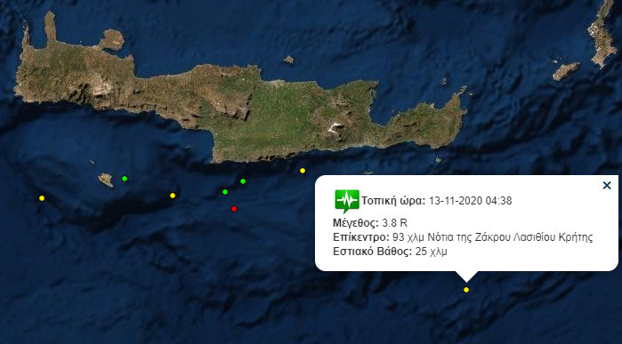 ΚΡΗΤΗΚΟΙΝΩΝΙΑ Σεισμός τα ξημερώματα στην Κρήτη Παρασκευή 13 Νοέ 2020 | 08:16 FacebookTwitterViberWhatsAppEmailCopy URL Πρέπει να διαβάσετε Νέα σεισμική δόνηση σημειώθηκε τα ξημερώματα νότια της Κρήτης. Ο σεισμός έντασης 3,8 βαθμών της κλίμακας Ρίχτερ σημειώθηκε στις 4:38, 93 χλμ Νότια της Ζάκρου Λασιθίου. Το εστιακό βάθος του σεισμού υπολογίζεται στα 25 χλμ. ΕτικέτεςΔΗΜΟΦΙΛΗ Σχετικά άρθρα Έκοψαν βασιλόπιτα στα μπλόκα οι αγρότες στα Χανιά Πέμπτη 1 Ιαν 2026 | 20:14 Κρήτη και αλκοόλ: Το επικίνδυνο φαινόμενο της μέθης ανηλίκων που δεν περιορίζεται Πέμπτη 1 Ιαν 2026 | 17:49 «Μαγεύουν» οι εικόνες από τα χιονισμένα ορεινά της Κρήτης – Έρχεται απόλυτη ανατροπή με τον καιρό – Βίντεο Πέμπτη 1 Ιαν 2026 | 14:51 Η πρώτη Δοξολογία για το 2026 και η κοπή της πρωτοχρονιάτικης πίτας στο Δήμο Βιάννου Πέμπτη 1 Ιαν 2026 | 14:40 Άλλα Πρόσφατα Xειροπέδες σε 14 άτομα για κλοπές και απάτες στο κέντρο της Θεσσαλονίκης Πέμπτη 1 Ιαν 2026 | 20:44 Φονική πυρκαγιά στο χιονοδρομικό κέντρο Κραν Μοντανά: Συγκλονιστικό βίντεο δείχνει θαμώνες που προσπαθούν να σωθούν από τις φλόγες Πέμπτη 1 Ιαν 2026 | 20:21 Έκοψαν βασιλόπιτα στα μπλόκα οι αγρότες στα Χανιά Πέμπτη 1 Ιαν 2026 | 20:14 Η διατροφή που νικά το στρες – 5 συστατικά που ηρεμούν τον οργανισμό Πέμπτη 1 Ιαν 2026 | 20:01 Ο μαγνητικός βόρειος πόλος της Γης άλλαξε θέση και μπήκε σε αχαρτογράφητη περιοχή Πέμπτη 1 Ιαν 2026 | 19:40