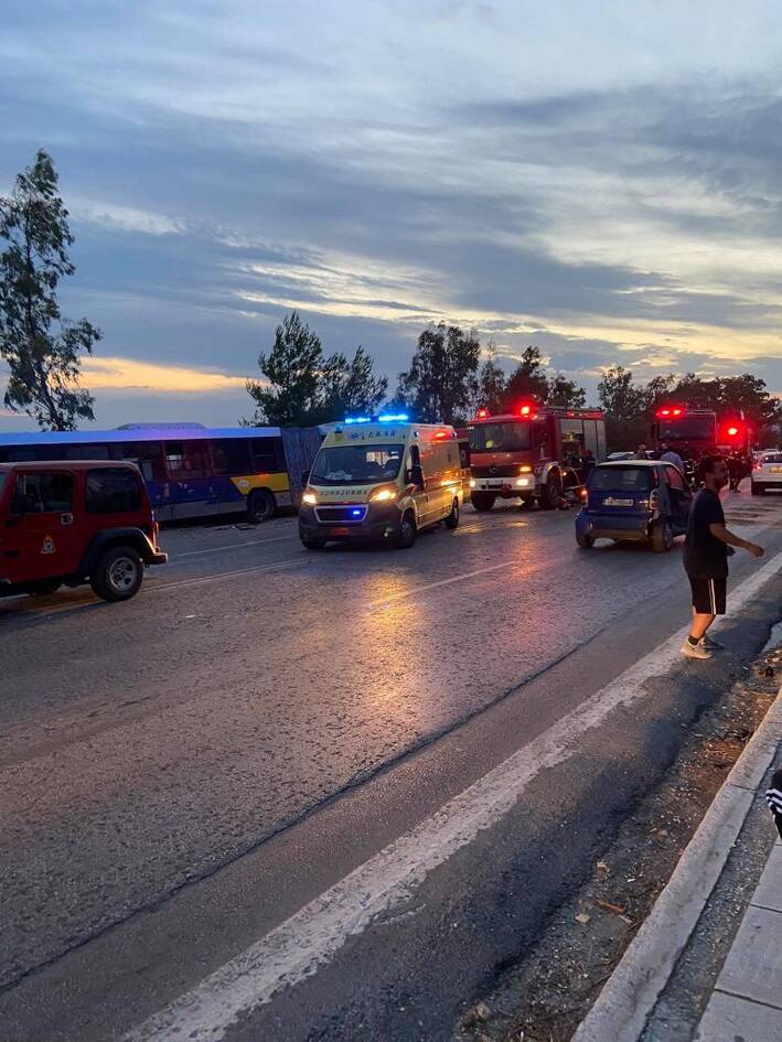 Οι ίδιες πληροφορίες αναφέρουν ότι έχει τραυματιστεί και μία ηλικιωμένη γυναίκα που επέβαινε στο λεωφορείο.