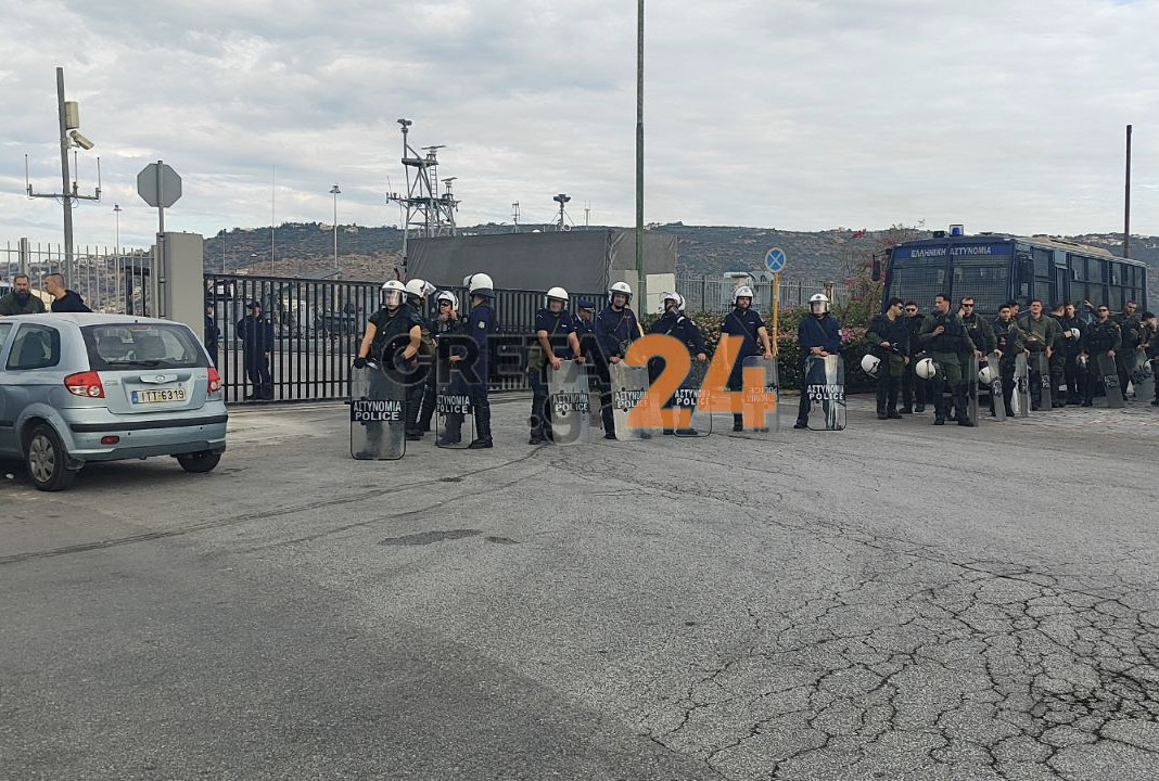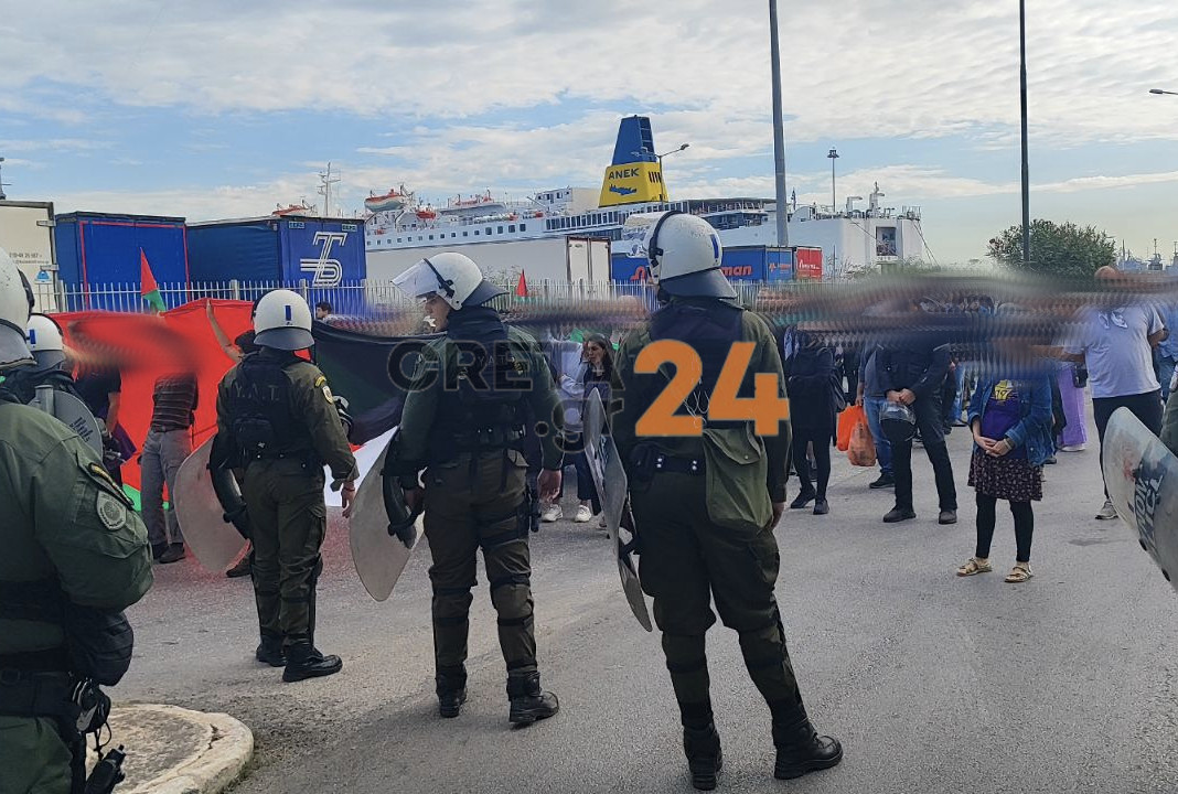 Τοπικοί σύλλογοι και συλλογικότητες πραγματοποιούν συγκέντρωση διαμαρτυρίας, παρουσία ισχυρών αστυνομικών δυνάμεων, οι οποίες βρίσκονταν από νωρίς στο λιμάνι για την αποφυγή επεισοδίων.