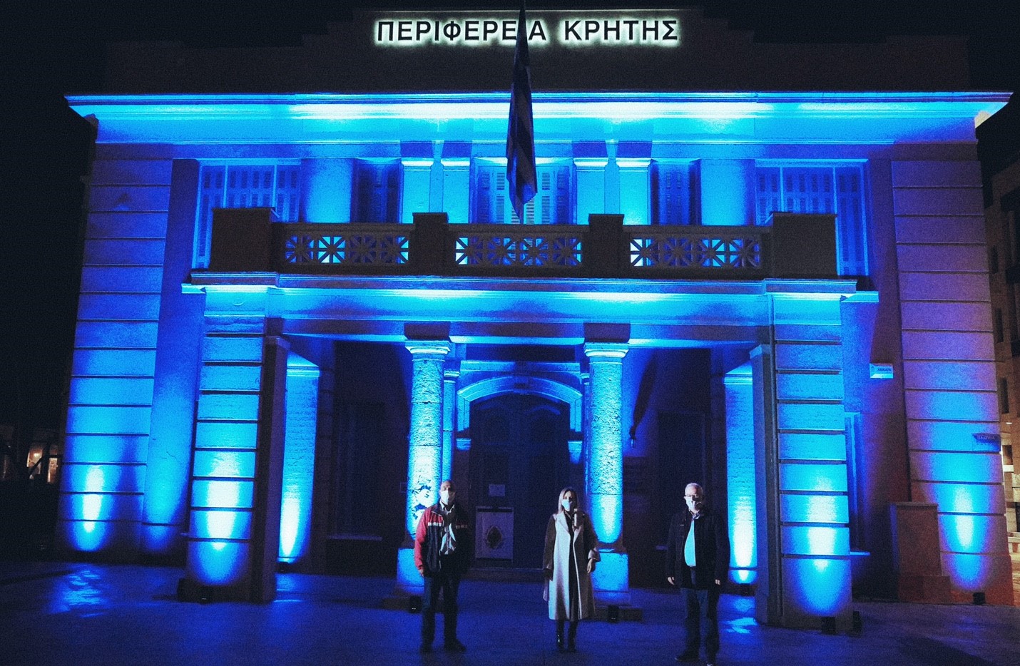 Το κεντρικό κτίριο της Περιφέρειας Κρήτης στο Ηράκλειο φωτίστηκε απόψε με μπλε χρώματα σε μια συμβολική κίνηση τιμής για την παγκόσμια ημέρα για το Διαβήτη.