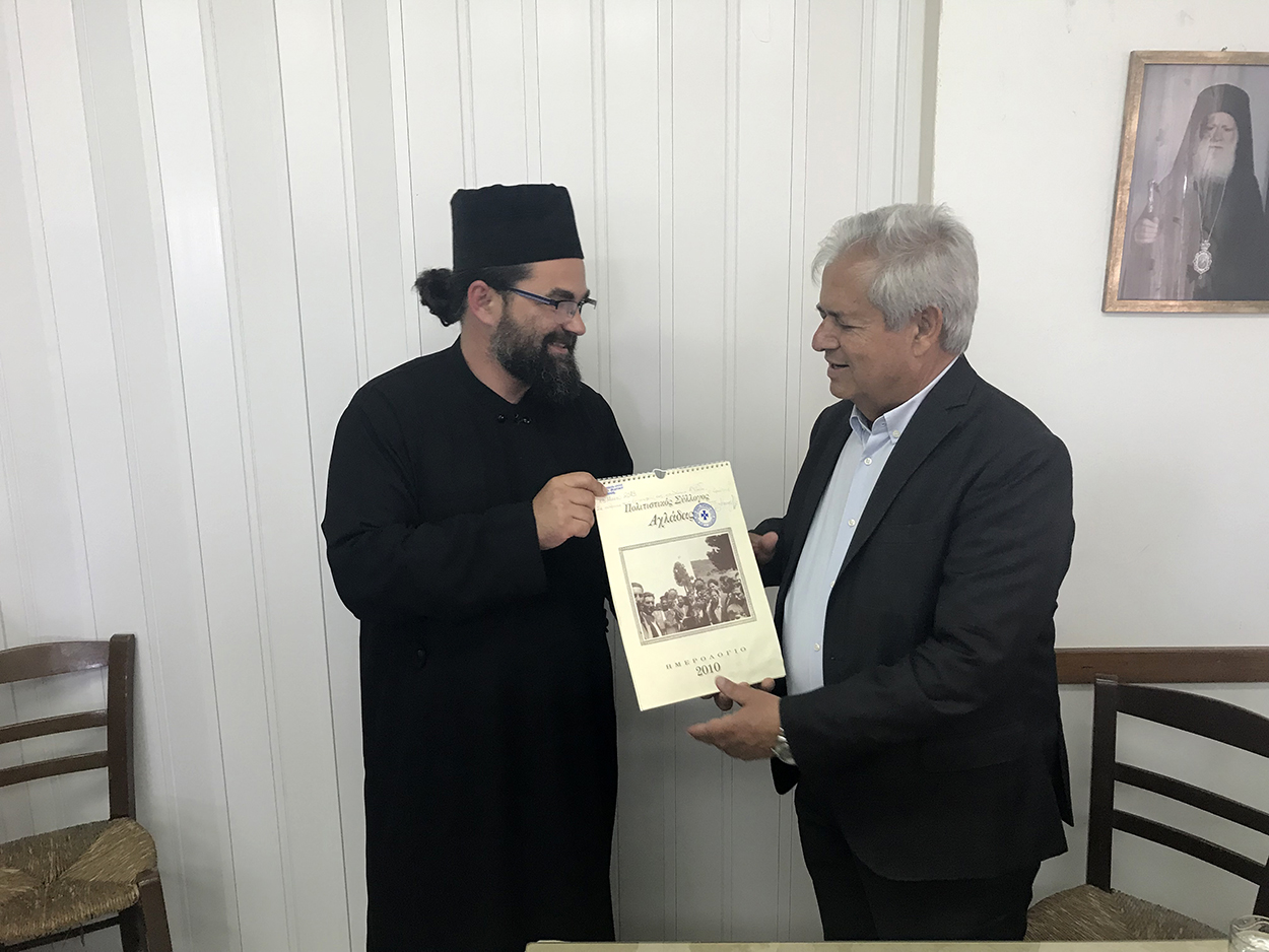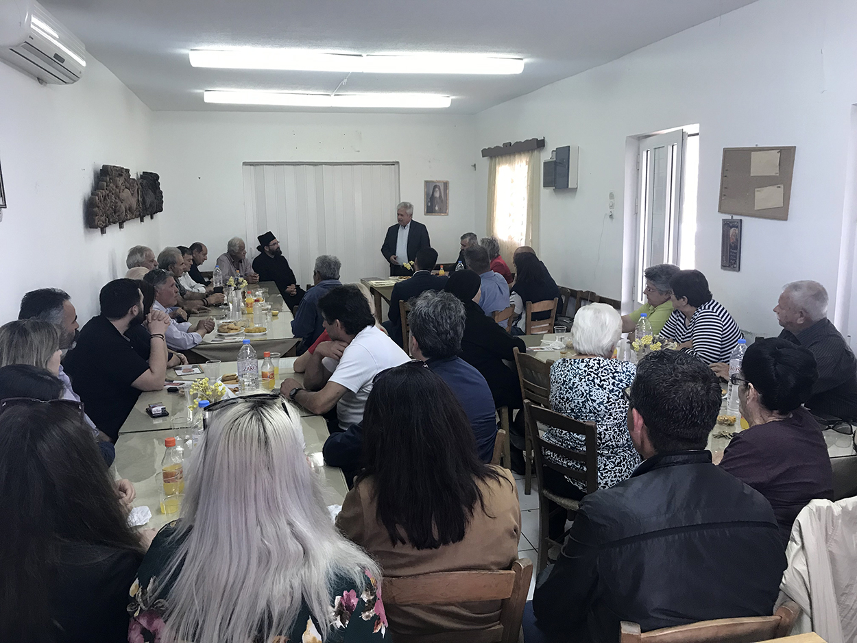 Ο Κώστας Μαμουλάκης συναντήθηκε με τους κατοίκους της Αχλάδας και τον ιερέα π. Τίτο στην αίθουσα του Ι.Ν. Αγ. Ιωάννη του Προδρόμου και συζήτησε μαζί τους για όλα όσα τους απασχολούν, καθώς και για τα διάφορα έργα του οικισμού, όπως είναι η ανάπλαση της κεντρικής πλατείας, τα έργα στο κοιμητήριο, θέματα βελτίωσης της αγροτικής οδοποιίας που ειδικά μετά τον φετινό χειμώνα χρήζουν άμεσης αντιμετώπισης, κ.α. ενώ έλαβε ως δώρο το ημερολόγιο του Πολιτιστικού Συλλόγου με ιδιόχειρη αφιέρωση.