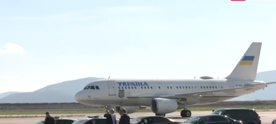 Στιγμιότυπο από την τροχοδρόμηση του αεροπλάνου του Ουκρανού προέδρου στο αεροδρόμιο Ελευθέριος Βενιζέλος.