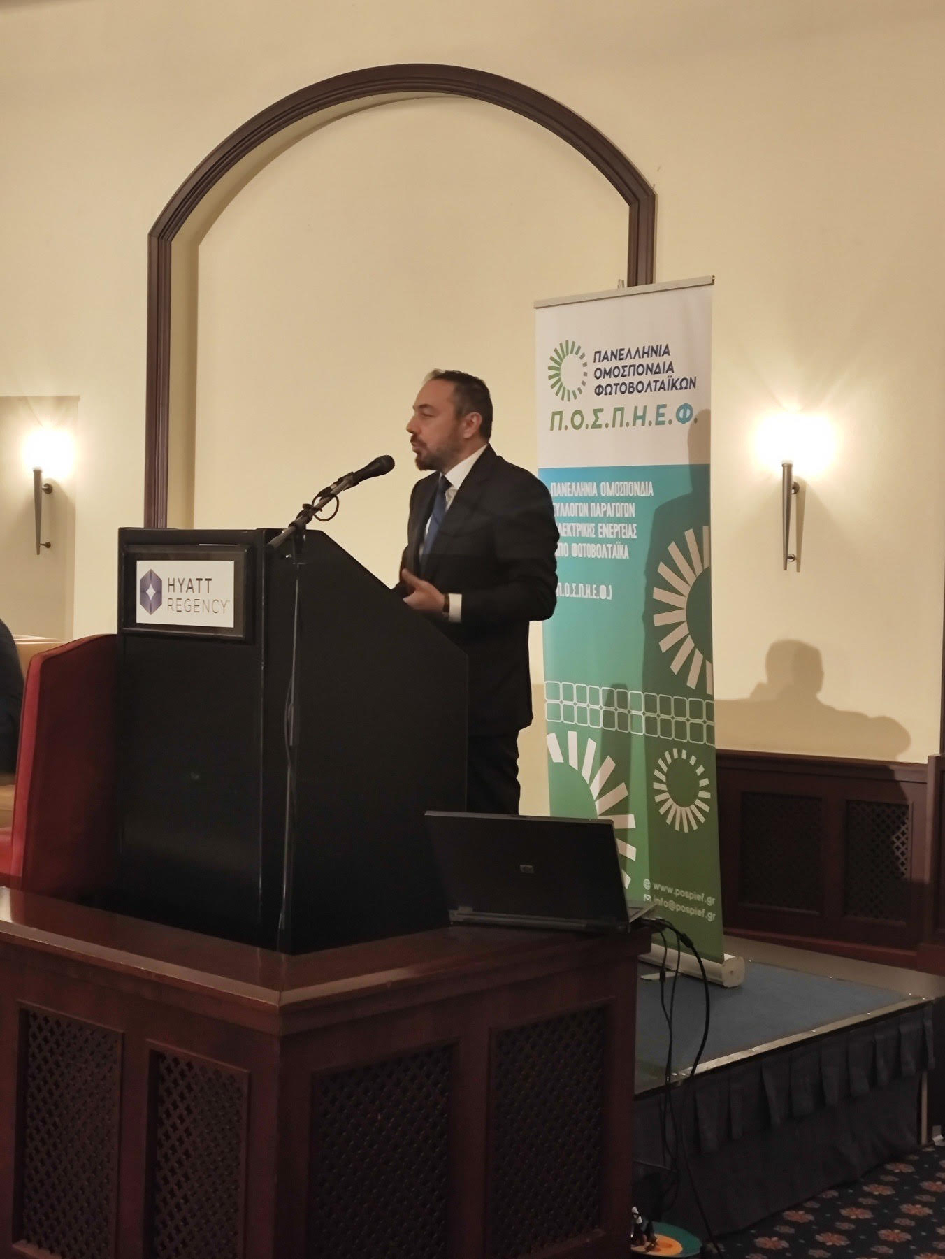Απευθυνόμενος στους εκατοντάδες παραγωγούς ενέργειας από φωτοβολταϊκά και στα μέλη της Διοίκησης της ΠΟΣΠΗΕΦ, εξέφρασε τη στήριξη των αιτημάτων των μικρών παραγωγών, κάνοντας ιδιαίτερη αναφορά στις αλλαγές που προβλέπονται στο υπό διαβούλευση νομοσχέδιο, στο οποίο αλλάζουν οι προθεσμίες υλοποίησης των Φ/Β σταθμών των μικρομεσαίων επενδυτών. «Τα νέα χρονικά ορόσημα για την αποζημίωση των παραγωγών ανατρέπουν σε μεγάλο βαθμό τον οικονομικό σχεδιασμό των επενδυτών και οδηγούν σε καθεστώς οικονομικής επισφάλειας εκατοντάδες παραγωγούς, με σημαντικές αρνητικές συνέπειες για τον κλάδο», υπογράμμισε ο Βουλευτής από το βήμα της ετήσιας συνάντησης.