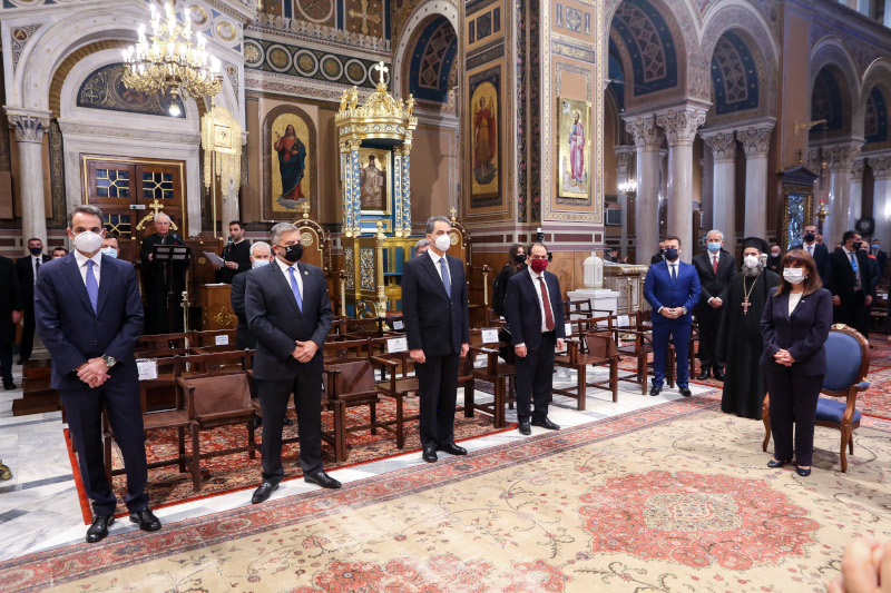 Στην πρωτοχρονιάτικη δοξολογία παραβρέθηκαν επίσης ο δήμαρχος Αθηναίων Κώστας Μπακογιάννης και ο περιφερειάρχης Αττικής Γιώργος Πατούλης.