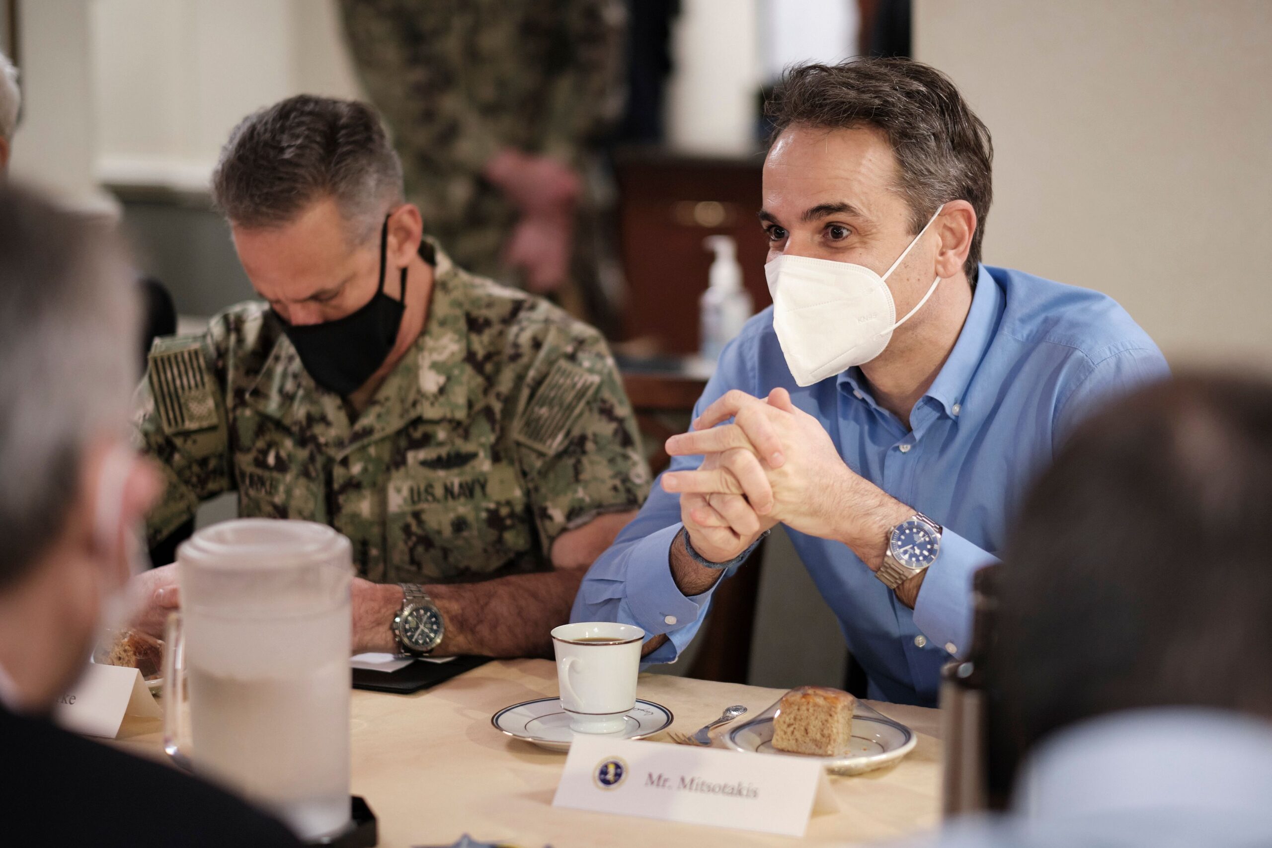 Ο Κυριάκος Μητσοτάκης αρχικά επισκέφθηκε υπόστεγο όπου φυλάσσεται ελικόπτερο MH-60R «Romeo», ένα από τα πλέον σύγχρονα ελικόπτερα του αμερικανικού Ναυτικού. Η Ελλάδα έχει υπογράψει σύμβαση για την απόκτηση τεσσάρων τέτοιων ελικοπτέρων σε πρώτη φάση, συν ακόμα τρία στη συνέχεια. Τα πρώτα θα παραληφθούν στα μέσα του 2022. Ο Πρωθυπουργός ενημερώθηκε από το πλήρωμα για τις ποικίλες επιχειρησιακές δυνατότητες του αεροσκάφους και για τον χειρισμό του.