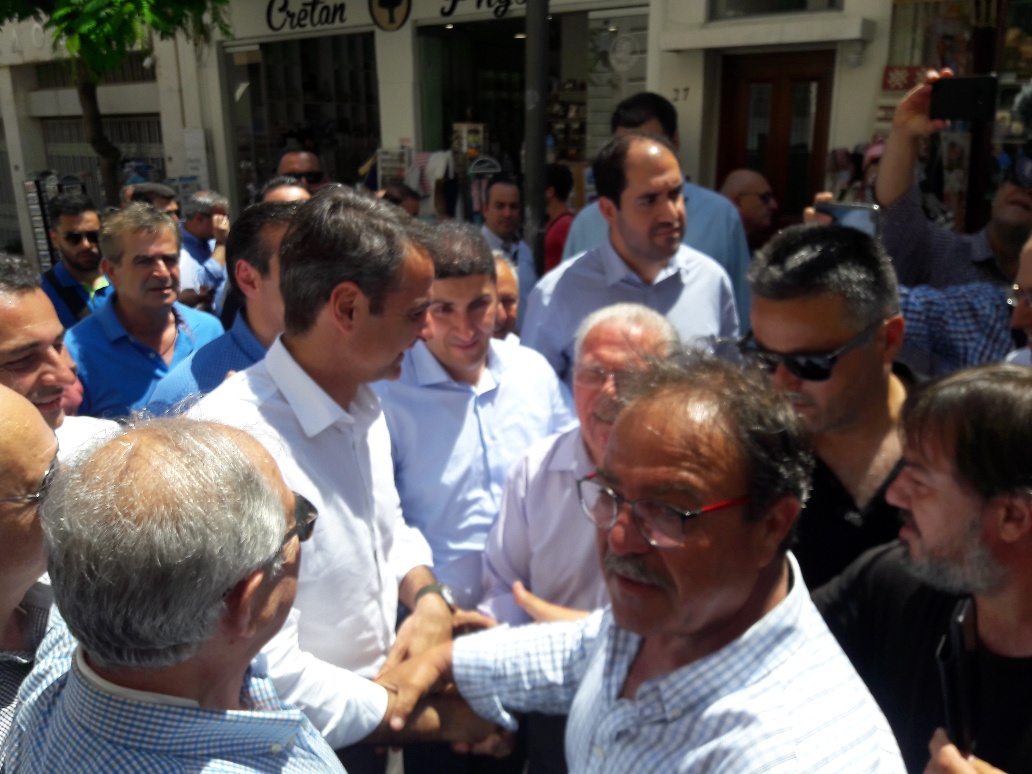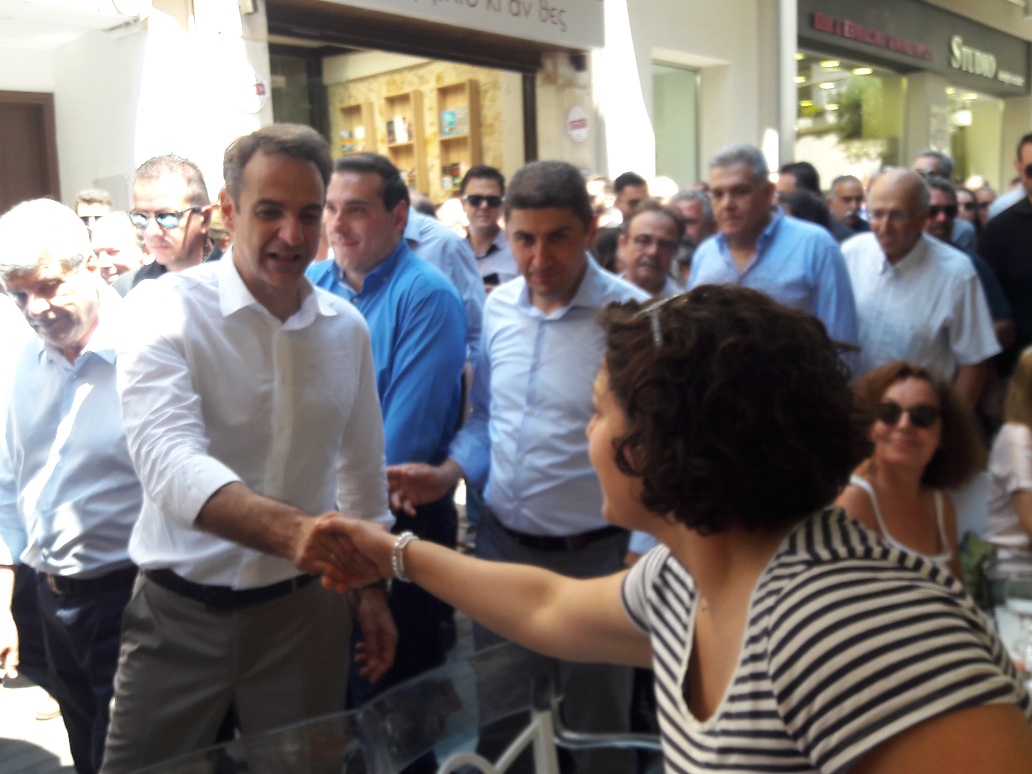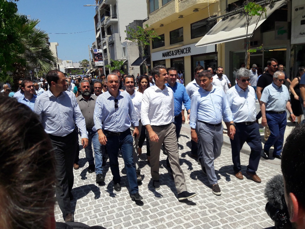Στο Ηράκλειο έφτασε το πρωί του Σαββάτου ο Κυριάκος Μητσοτάκης στο πλαίσιο της προεκλογικής του περιοδείας.
