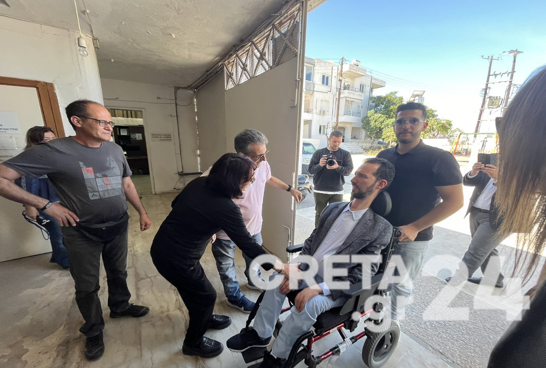 Νωρίτερα το πρωί, συναντήθηκε με τον Παγκρήτιο Σύλλογο Αναπήρων Πολιτών, ενώ το πρόγραμμά του περιλαμβάνει κι άλλες επαφές.
