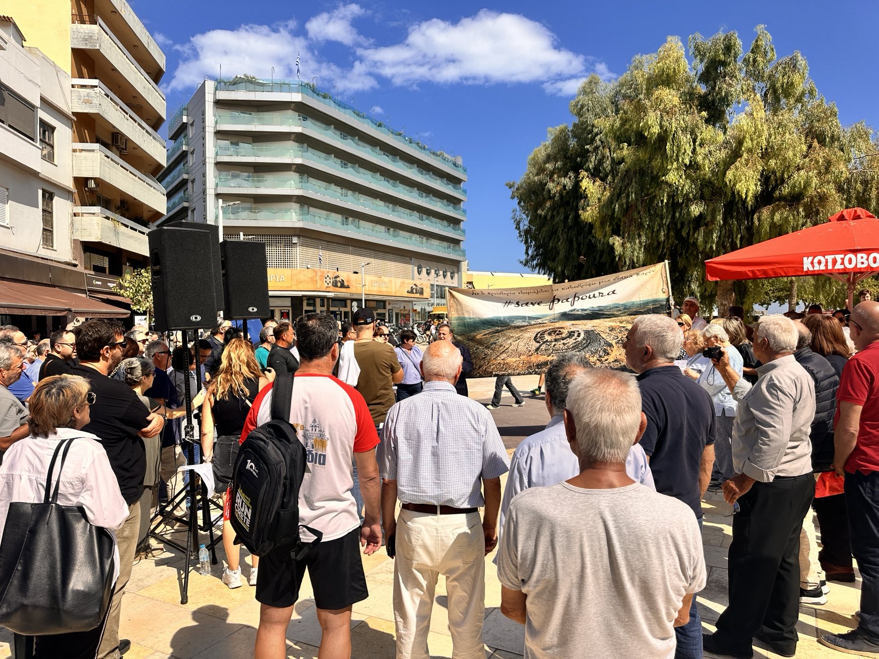 Την ίδια ώρα που ο Υφυπουργός υποδομών και μεταφορών βρίσκεται στο νέο αεροδρόμιο Καστελλίου, επιθεωρώντας το εργοτάξιο, ο δήμαρχος της περιοχής (Μινώα Πεδιάδος) Βασίλης Κεγκέρογλου μιλάει σε συγκεντρωμένους στην Πλατεία Ελευθερίας του Ηρακλείου για τον λόφο Παπούρα, παραμένοντας στην απόφαση του να μην συναντηθεί με τον Ν. Ταχιάο.