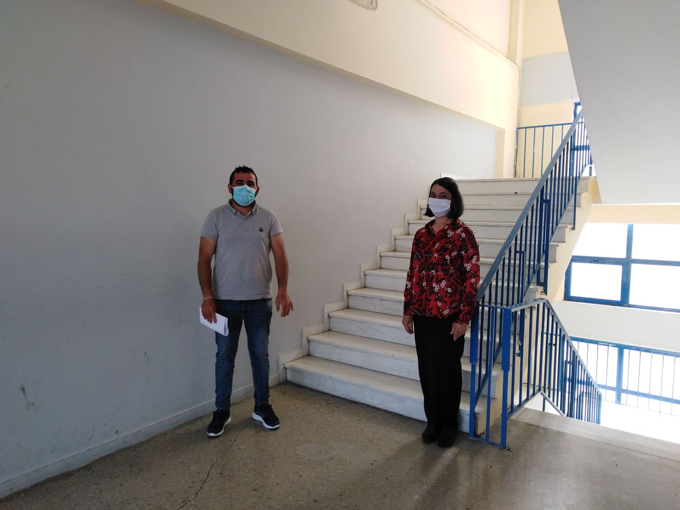 Τους Αντιδημάρχους υποδέχθηκαν οι Διευθυντές της σχολικής μονάδας, η Γυμνασιάρχης, Φυσικός, κα. Βογιάκη Ελένη, και ο Λυκειάρχης, Μαθηματικός, κος. Κρασανάκης Γιώργος.