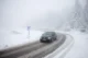 Ένα αυτοκίνητο οδηγεί κατά μήκος ενός δρόμου κατά τη διάρκεια μιας απροσδόκητης χιονόπτωσης στο βουνό Jahorina κοντά στο Σαράγεβο της Βοσνίας, την Πέμπτη 2 Οκτωβρίου 2025.