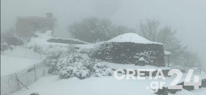 Το έστρωσε για τα καλά στα ορεινά της Κρήτης, με το ανοιξιάτικο χιόνι να έχει ασπρίσει τον Ψηλορείτη.