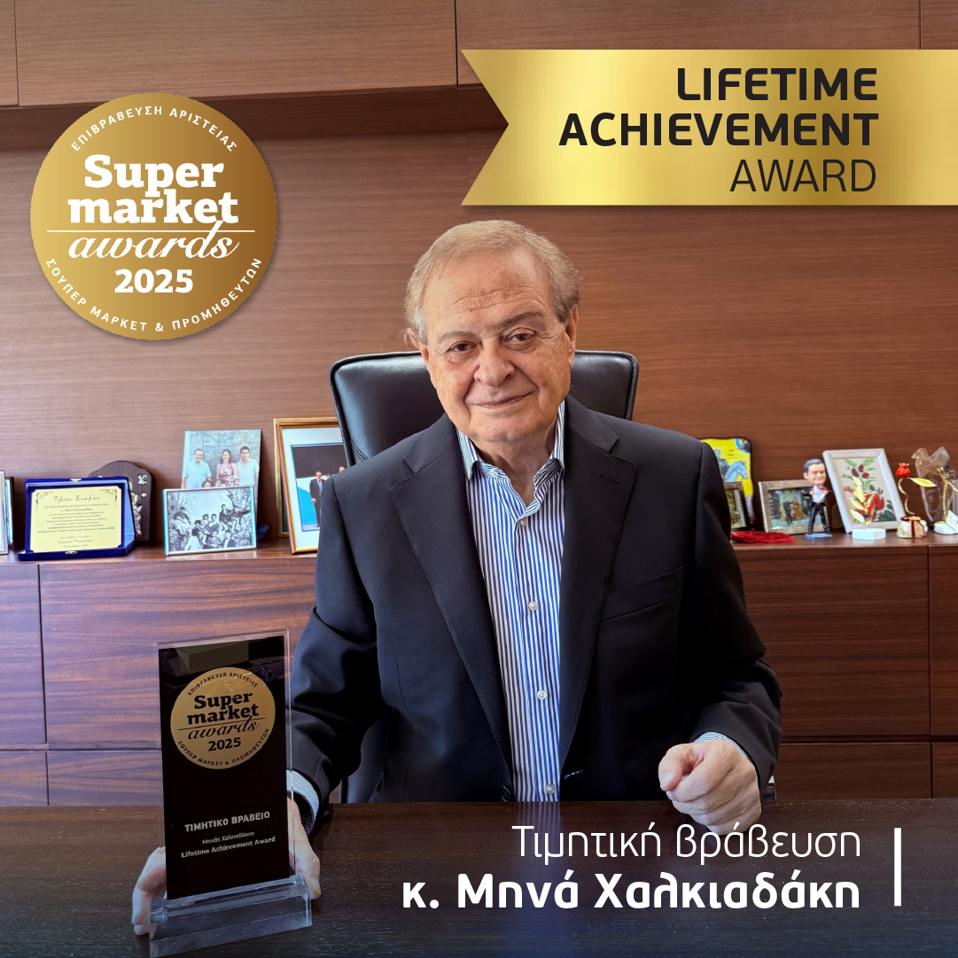 Στα Super Market Awards 2025, το Lifetime Achievement Award απονεμήθηκε στον κ. Μηνά Χαλκιαδάκη, για τις αξίες και την προσφορά του στο οργανωμένο λιανεμπόριο.