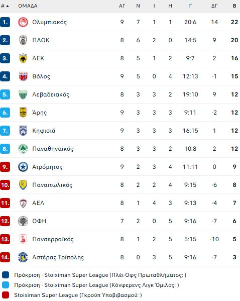 Μετά από αυτή τη νίκη οι Πειραιώτες του Χοσέ Λουίς Μεντιλίμπαρ ανέβηκαν στην κορυφή της βαθμολογίας με 22 πόντους, προσπερνώντας τον ΠΑΟΚ, με τον «Δικέφαλο του Βορρά», ωστόσο, να έχει ένα ματς λιγότερο, καθώς θα αγωνιστεί αύριο, Κυριακή (2/11, 19:30) εκτός έδρας με αντίπαλο τον Πανσερραϊκό.
