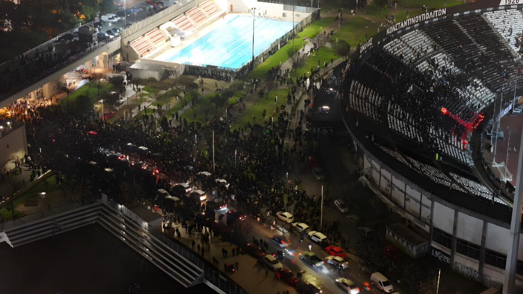 Βουβός είναι ο πόνος σε όλο το γήπεδο της Τούμπας, όπου δακρυσμένοι φίλαθλοι υποδέχτηκαν την αυτοκινητοπομπή και τις επτά σορούς. Φίλαθλοι άναψαν πυρσούς για να τους υποδεχτούν την ώρα που έφτασαν στο γήπεδο, ενώ φώναζαν «Αδέλφια ζείτε, εσείς μας οδηγείτε». Η νύχτα έγινε μέρα έξω από το γήπεδο, όπου περίσσεψε η συγκίνηση και ο πόνος.