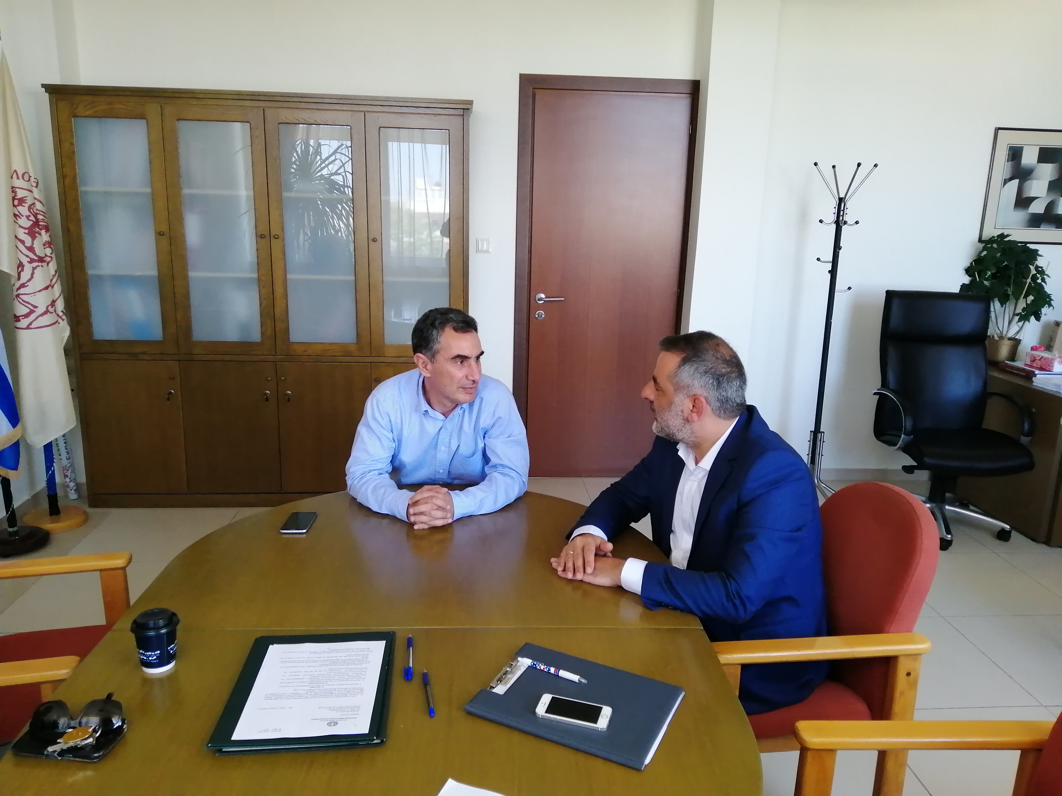 Συνάντηση με τον Πρύτανη του Ελληνικού Μεσογειακού Πανεπιστημίου (πρώην ΤΕΙ Κρήτης) καθηγητή Νικόλαο Κατσαράκη είχε ο Δήμαρχος Οροπεδίου Λασιθίου με την παρουσία του Καθηγητή του ιδρύματος Γιάννη Ξεζωνάκη στο γραφείο του Πρύτανη.