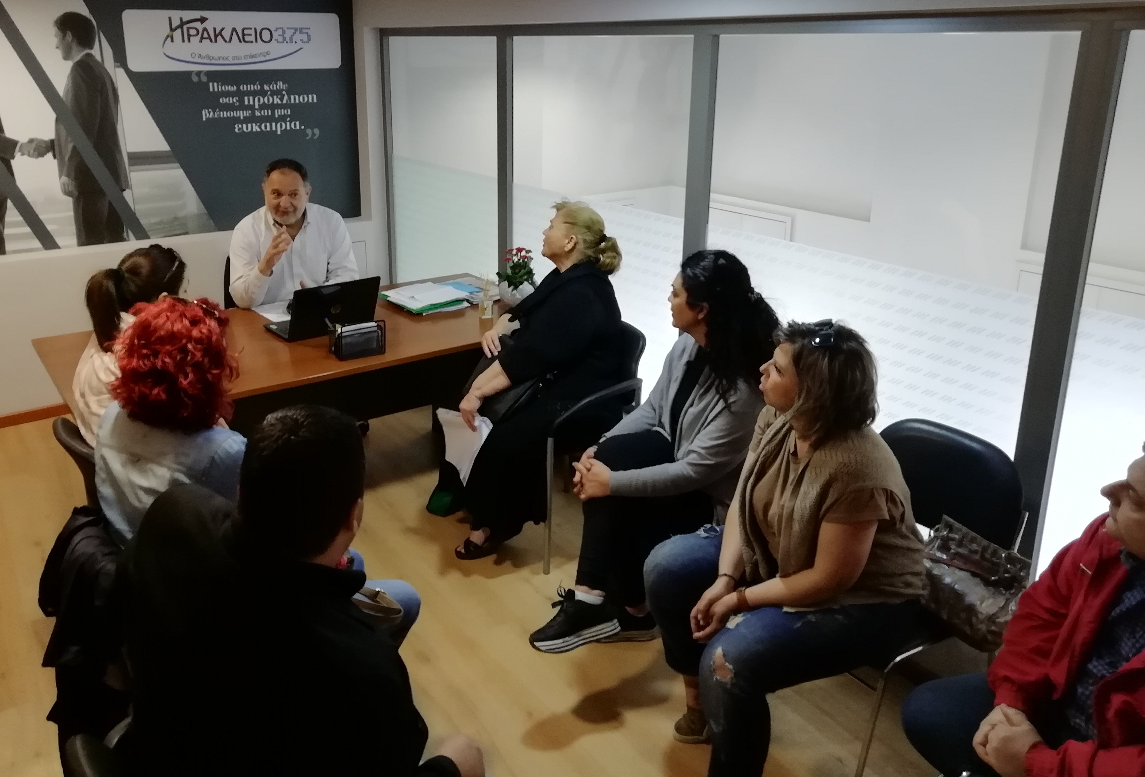 Συνάντηση με αντιπροσωπεία των συμβασιούχων εργαζομένων μέσω των Προγραμμάτων της Ε.Ε. στους Βρεφονηπιακούς και Παιδικούς Σταθμούς του Δήμου Ηρακλείου είχε ο επικεφαλής της Δημοτικής Κίνησης «ΗΡΑΚΛΕΙΟ 3.7.5» κ. Γιάννης Κουράκης.