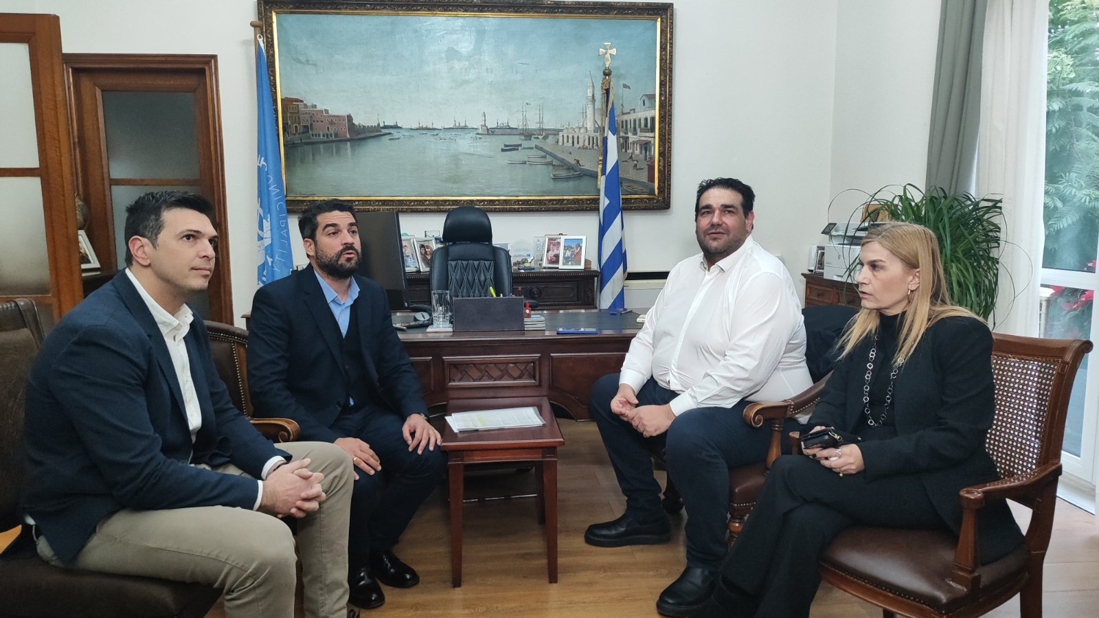Τον Υπουργό υποδέχτηκε ο Δήμαρχος Χανίων, Παναγιώτης Σημανδηράκης, ενώ στη συνέχεια πραγματοποιήθηκε σύσκεψη με τη συμμετοχή του Γενικού Γραμματέα του Δήμου, Γιώργο Φραγκιαδάκη, τους Αντιδημάρχους, Τάσο Αλόγλου, Μιχάλη Καλογριδάκη, Γιάννη Νικηφοράκη, Νίκο Χαζιράκη, Μιχάλη Τσουπάκη, Αντώνη Βαρδάκη, τον Πρόεδρο του Δημοτικού Λιμενικού Ταμείου Χανίων, Μανώλη Κοτσιφάκη, τον Πρόεδρο της Πρωτοβάθμιας Σχολικής Επιτροπής, Ζαχάρη Μαυριδάκη, τον Γενικό Διευθυντή της ΔΕΔΙΣΑ, Κώστα Πατεράκη καθώς και την Διευθύντρια των Οικονομικών Υπηρεσιών, Δέσποινα Μπολανάκη.