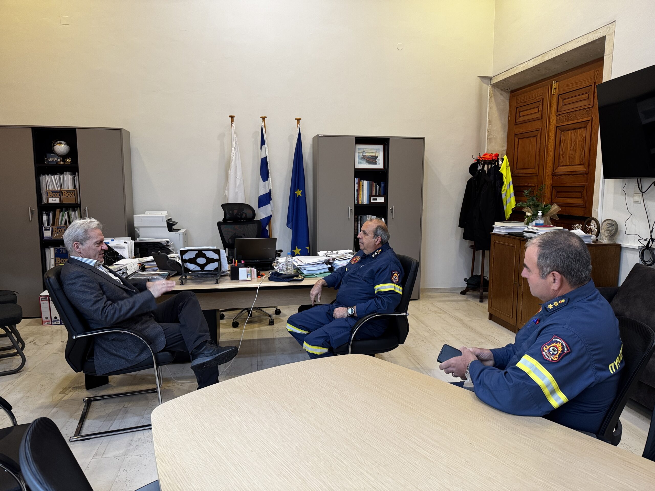 Τον νέο Συντονιστή Πυροσβεστικών Επιχειρήσεων Βορείου, Νοτίου Αιγαίου και Κρήτης Υποστράτηγο Μιχάλη Σεληνιωτάκη συνάντησε ο Δήμαρχος Ηρακλείου Αλέξης Καλοκαιρινός το πρωί της Δευτέρας 19/1 στη Λότζια.