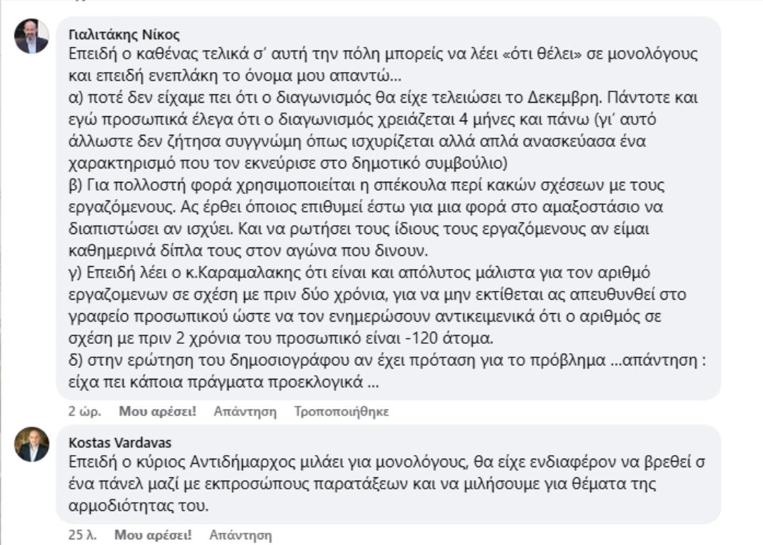 Και δεν άργησε να έρθει και το σχόλιο από τον πρώην αντιδήμαρχο καθαριότητας και δημοτικό σύμβουλο με την παράταξη «Ηράκλειο για σένα» Κώστα Βαρδαβά, ο οποίος κάλεσε σε πάνελ τον Νίκο Γιαλιτάκη για να μιλήσουν για θέματα καθαριότητας.