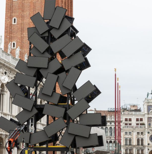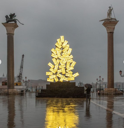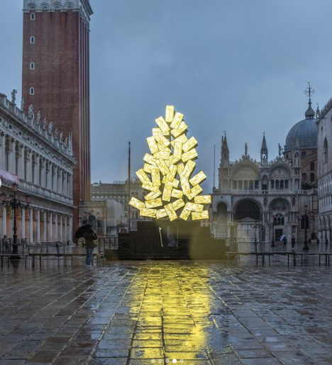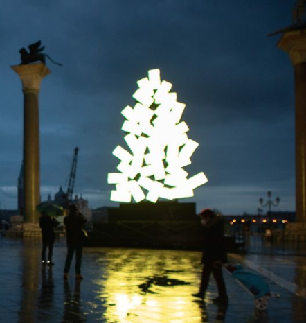 Στην πλατεία του Αγίου Μάρκου, όπου δεσπόζει η ομώνυμη Βασιλική, ο Ιταλός καλλιτέχνης Φαμπρίτσιο Πλέσι εγκατέστησε ένα μονάχα χριστουγεννιάτικο δέντρο. Πρόκειται για ένα έργο από τεράστιες ορθογώνιες οθόνες, που προβάλλουν εικόνες με χρυσό χρώμα, οι οποίες στήθηκαν η μία πάνω στην άλλη για να σχηματίσουν τη μορφή του παραδοσιακού έλατου. Τη νύχτα, αυτές οι οθόνες πλημμυρίζουν με χρώμα την πλατεία εκπέμποντας ένα ζεστό φως.