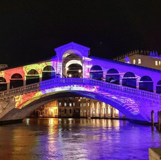 Χωρίς τουρίστες εξαιτίας της πανδημίας του κορωνοϊού, η Βενετία αποφάσισε εντούτοις να φωτίσει με εντυπωσιακό τρόπο για τις γιορτές των Χριστουγέννων και της Πρωτοχρονιάς δύο από τα διασημότερα αξιοθέατά της: την πλατεία του Αγίου Μάρκου και τη γέφυρα του Ριάλτο, πάνω από το Μεγάλο Κανάλι.