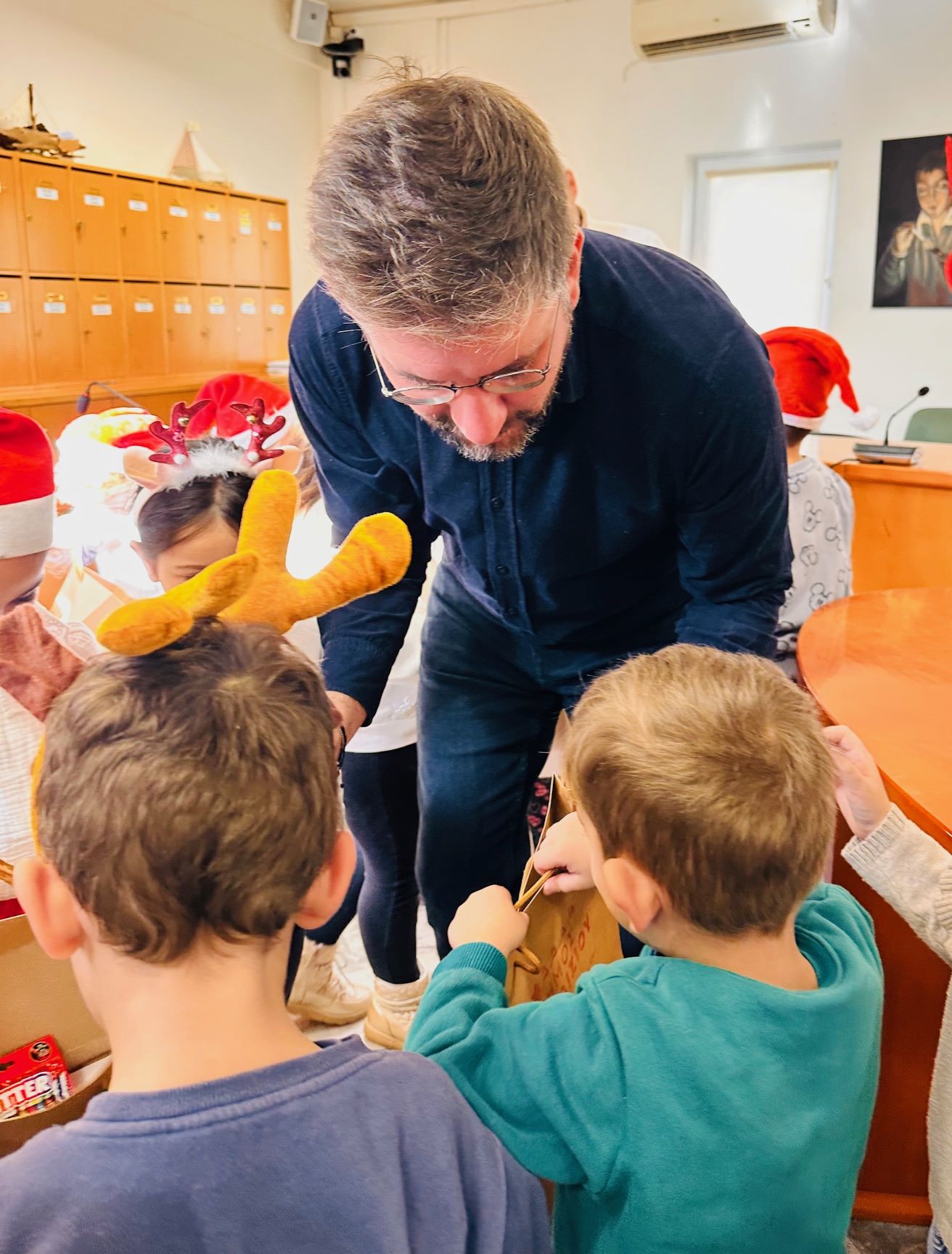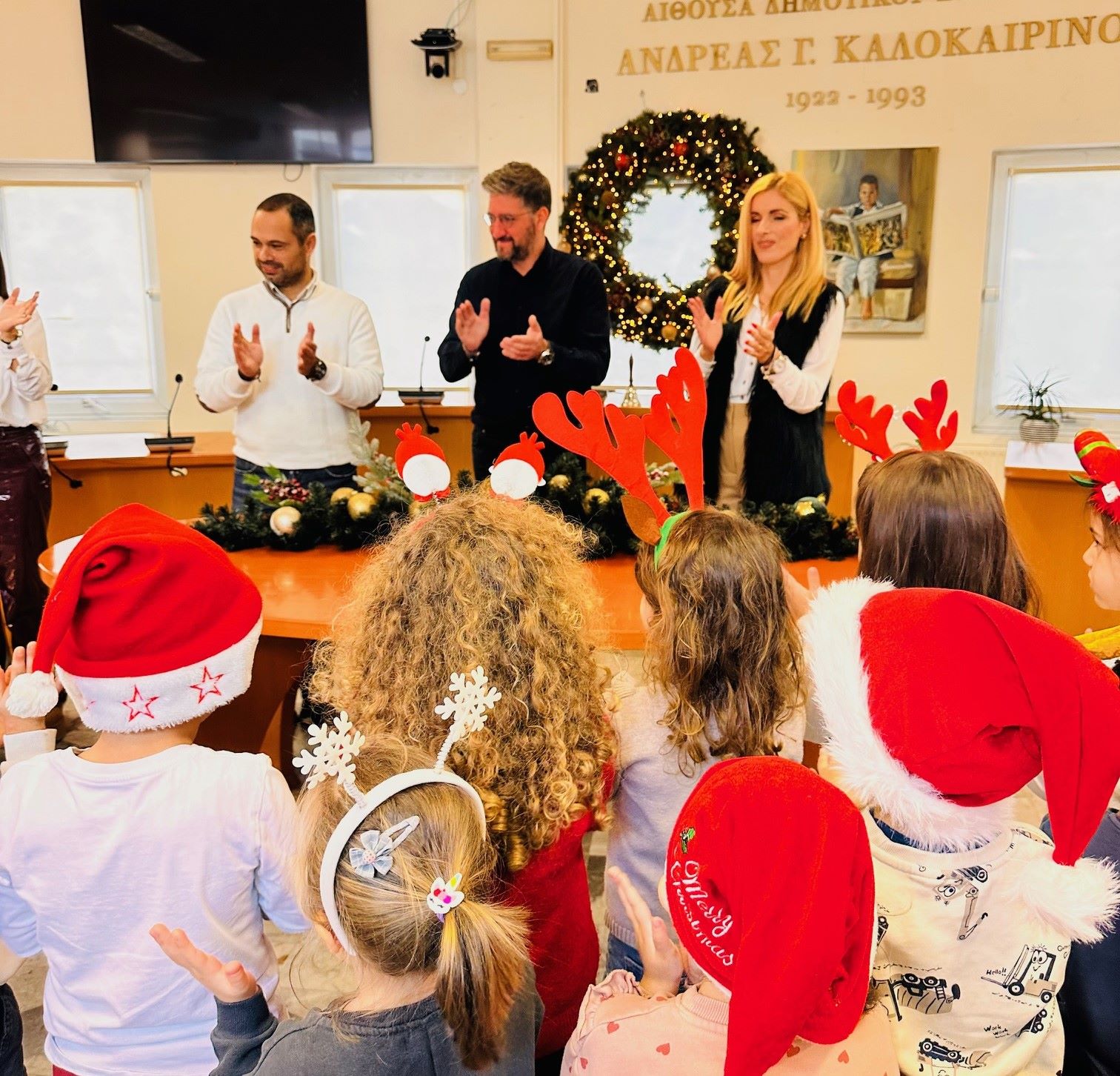 Ο Δήμαρχος, μαζί με τους Αντιδημάρχους Μαρίνα Βογιατζή και Βαγγέλη Παρασύρη, υποδέχθηκαν με χαρά τα παιδιά και τους εκπαιδευτικούς, αντάλλαξαν ευχές και προσέφεραν μικρά δώρα στα παιδιά, ενόψει των Χριστουγέννων.