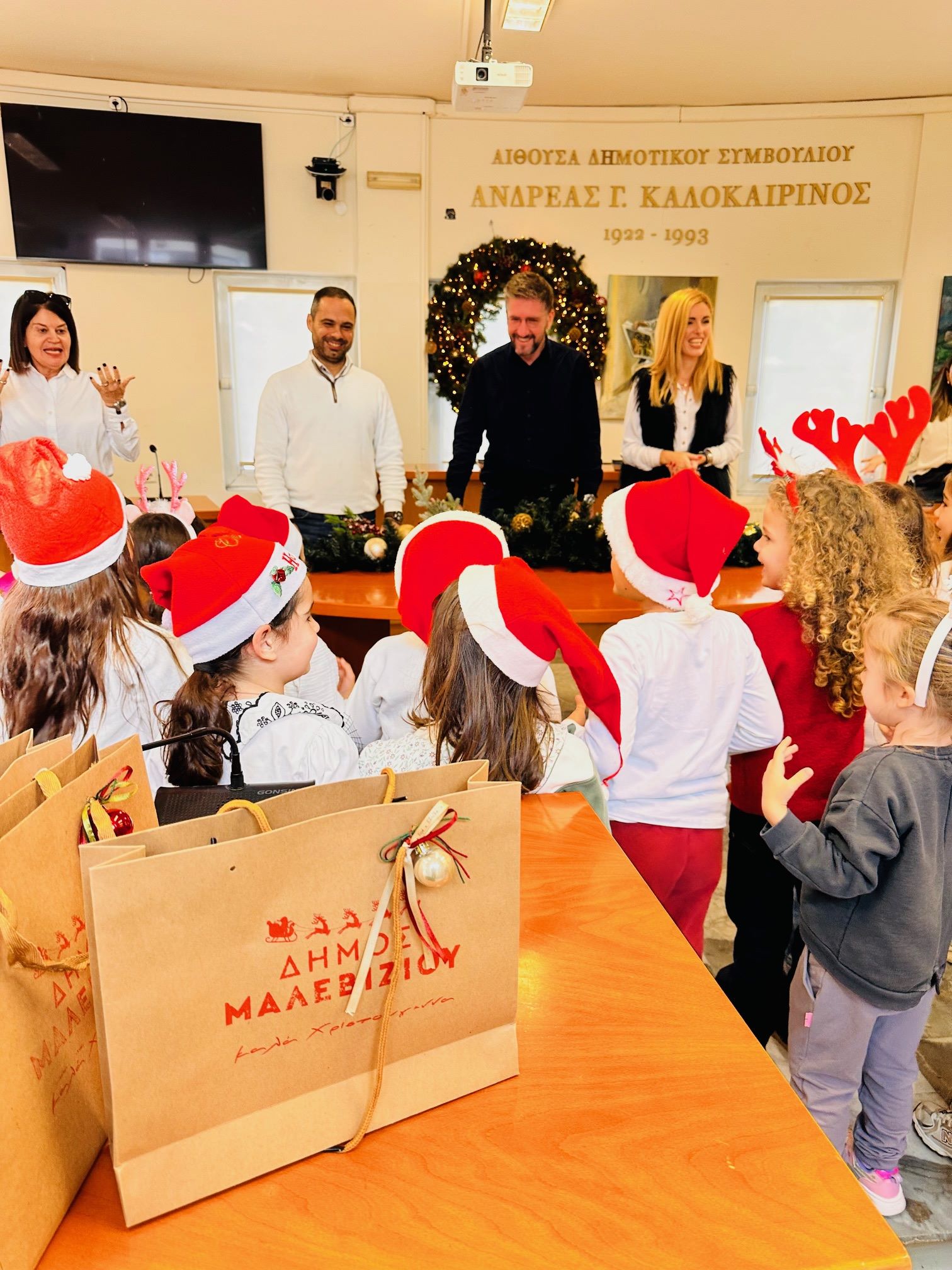Με χαρούμενες παιδικές φωνές γέμισε το Δημαρχείο Μαλεβιζίου από τα παιδιά του Βρεφονηπιακού Σταθμού «Παραμύθι», τα οποία έψαλαν τα χριστουγεννιάτικα κάλαντα στον Δήμαρχο Μαλεβιζίου Μενέλαο Μποκέα.
