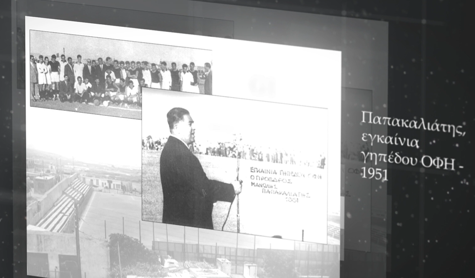 Και συνέχισε: ”Με την ίδρυση του ΟΦΗ ξέραμε ότι χάναμε τον πατέρα μου, οι ελεύθερες του ώρες και οι… μη ελεύθερες ήταν με τον ΟΦΗ. Πιο πολύ με την κατασκευή του πρώτου γηπέδου στα Χεντέκια. Έξω ακριβώς από τα Τείχη, στο ”Κομμένο Μπεντένι”. Θυμάμαι και ως πιτσιρίκια, η μπάλα μας ήταν μια κάλτσα γεμιστή με πανιά. Παίζαμε ξυπόλυτοι”. Υπήρχε και την διάρκεια της κατοχής το γήπεδο.
