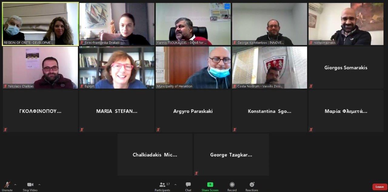 Τη συνάντηση οργάνωσε και συντόνισε η Περιφέρεια Κρήτης δια ζώσης και διαδικτυακά στα γραφεία της Περιφέρειας, σηματοδοτώντας τη λήξη της Α’ φάσης του έργου, που αφορούσε τη φάση εκμάθησης και ανταλλαγής καλών πρακτικών.