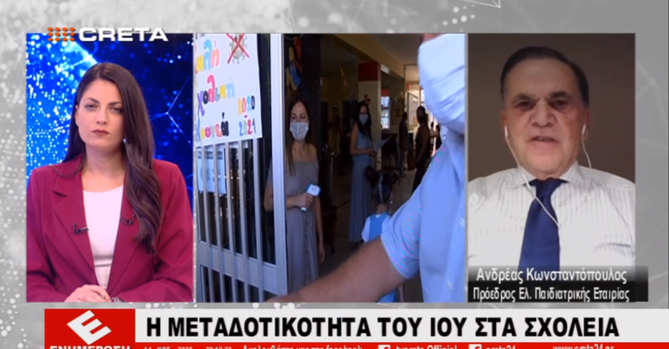 «Είναι γνωστό από την Αμερική, γιατί εμείς εδώ δεν έχουμε πολλά περιστατικά ώστε να μπορούμε να εξάγουμε συμπεράσματα, ότι 1 στα 160 παιδιά που έχει νοσήσει από κορωνοϊό μπορεί αν κάνει φλεγμονώδες σύνδρομο και το 2-3% καταλήγει. Δηλαδή για κάθε 150 παιδιά που νοσούν χάνουμε 3 έως 5», ανέφερε χαρακτηριστικά ο Πρόεδρος της Ελληνικής Παιδιατρικής Εταιρείας.