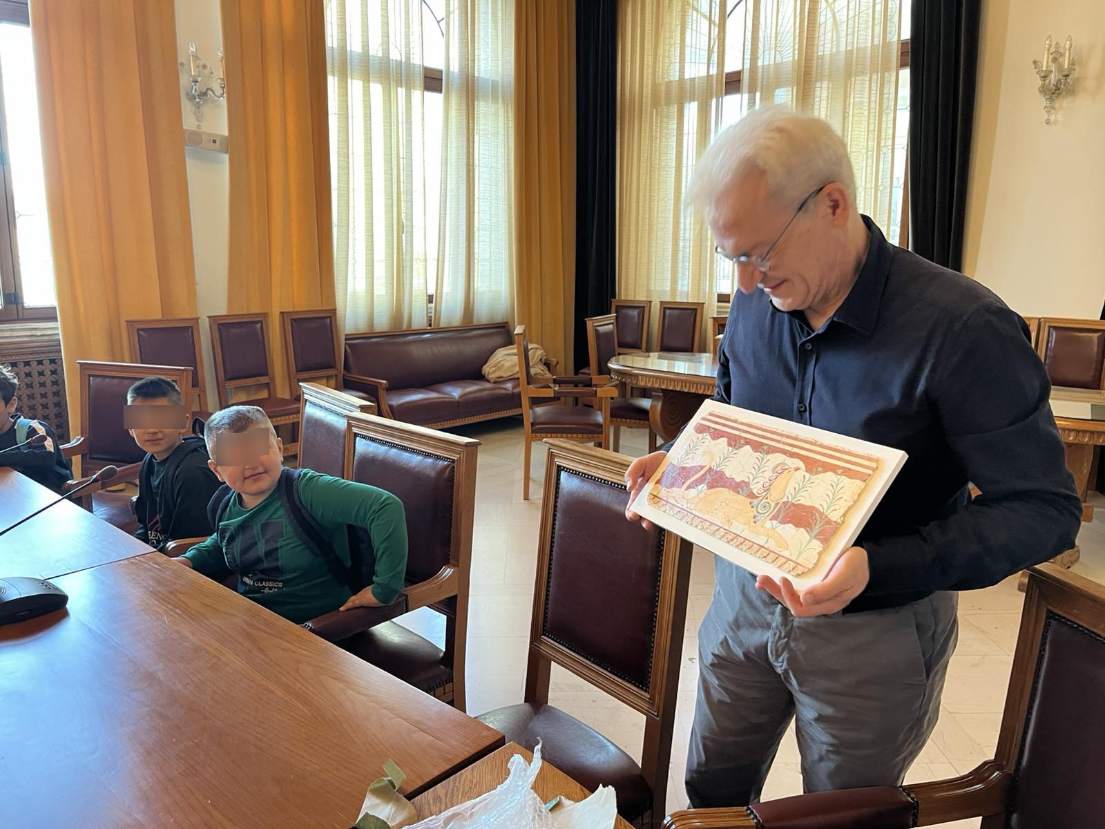 “Τα παιδιά της Δ’ Τάξης του 4ου Δημοτικού Σχολείου μαζί με τις εκπαιδευτικούς τους, υποδέχθηκε με χαρά ο Δήμαρχος Ηρακλείου Αλέξης Καλοκαιρινός και η Αντιδήμαρχος Εθελοντισμού Φιλαρέτη Δαφέρμου – Χρονάκη στην αίθουσα «Ελευθέριος Βενιζέλος» στη Λότζια, το πρωί της Τετάρτης 26/11.