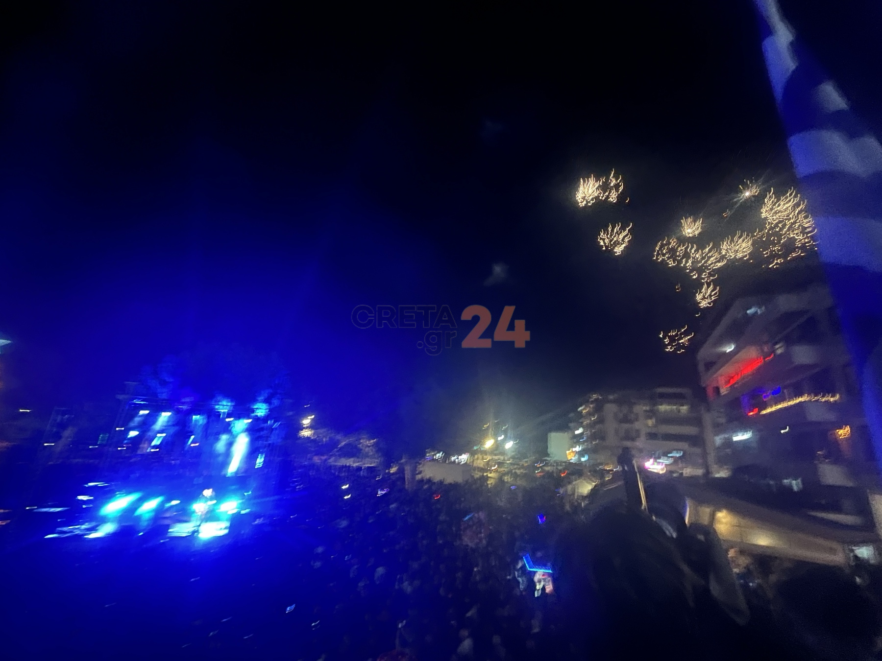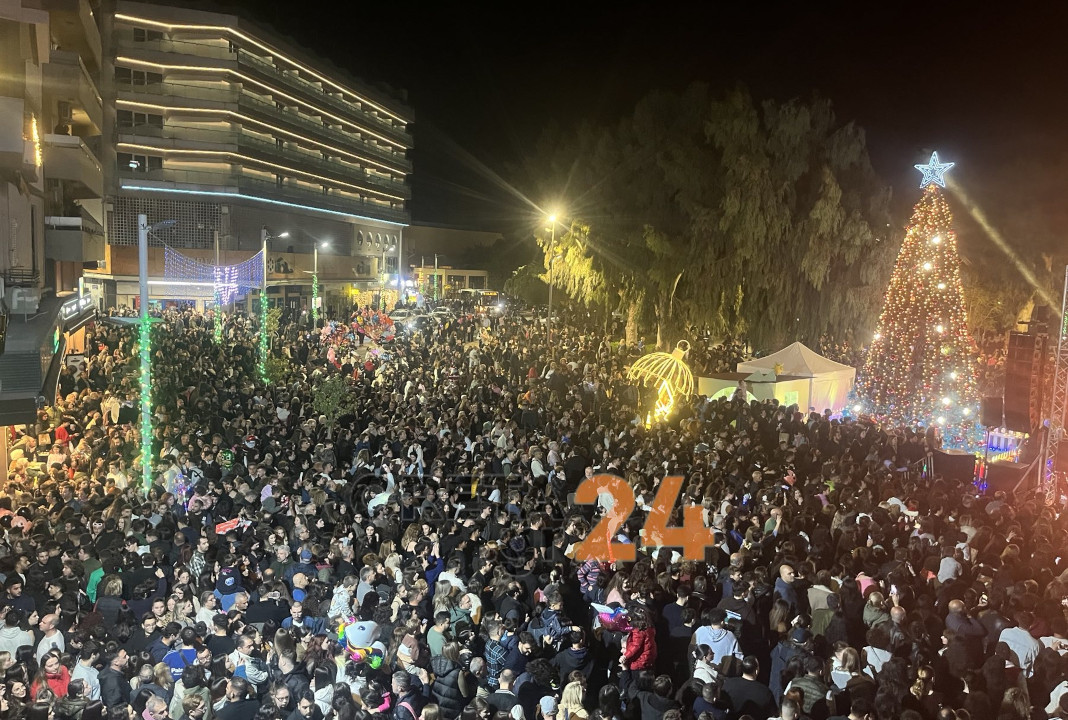 Mε την καθιερωμένη αντίστροφη μέτρηση τα φώτα του Χριστουγγενιάτικου δέντρου που κοσμεί την κεντρικότερη πλατεία της πόλης άναψαν και τα πυροτεχνήματα φώτισαν τον ουρανό.