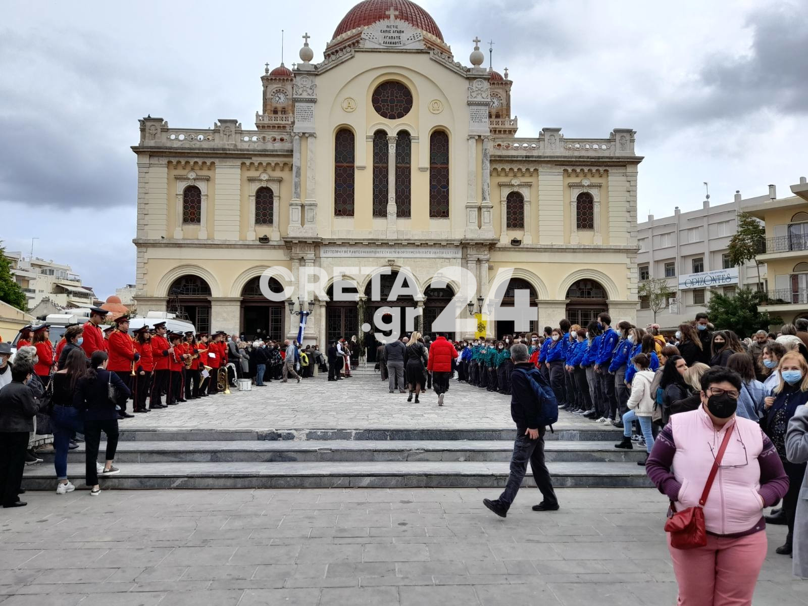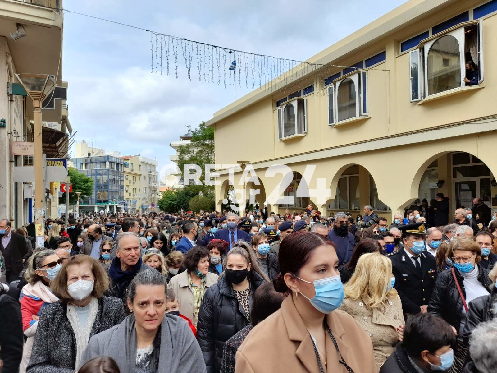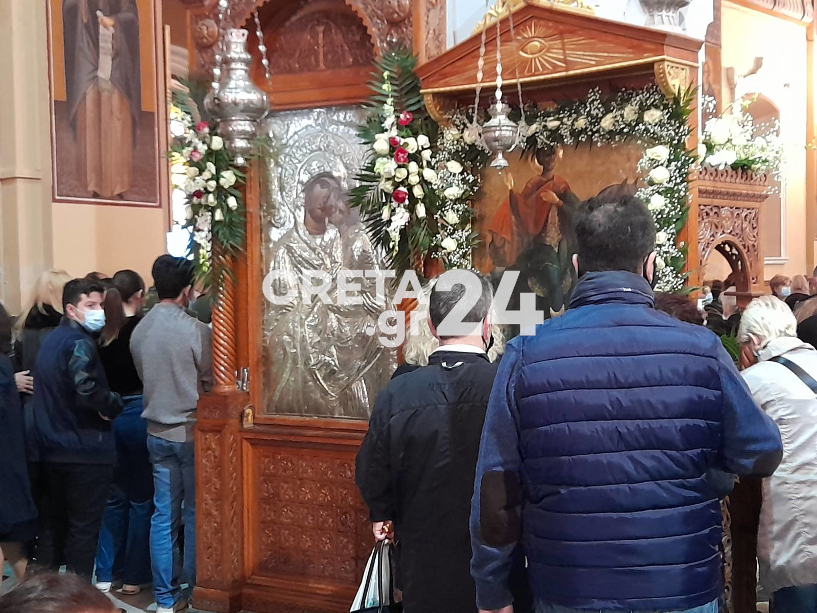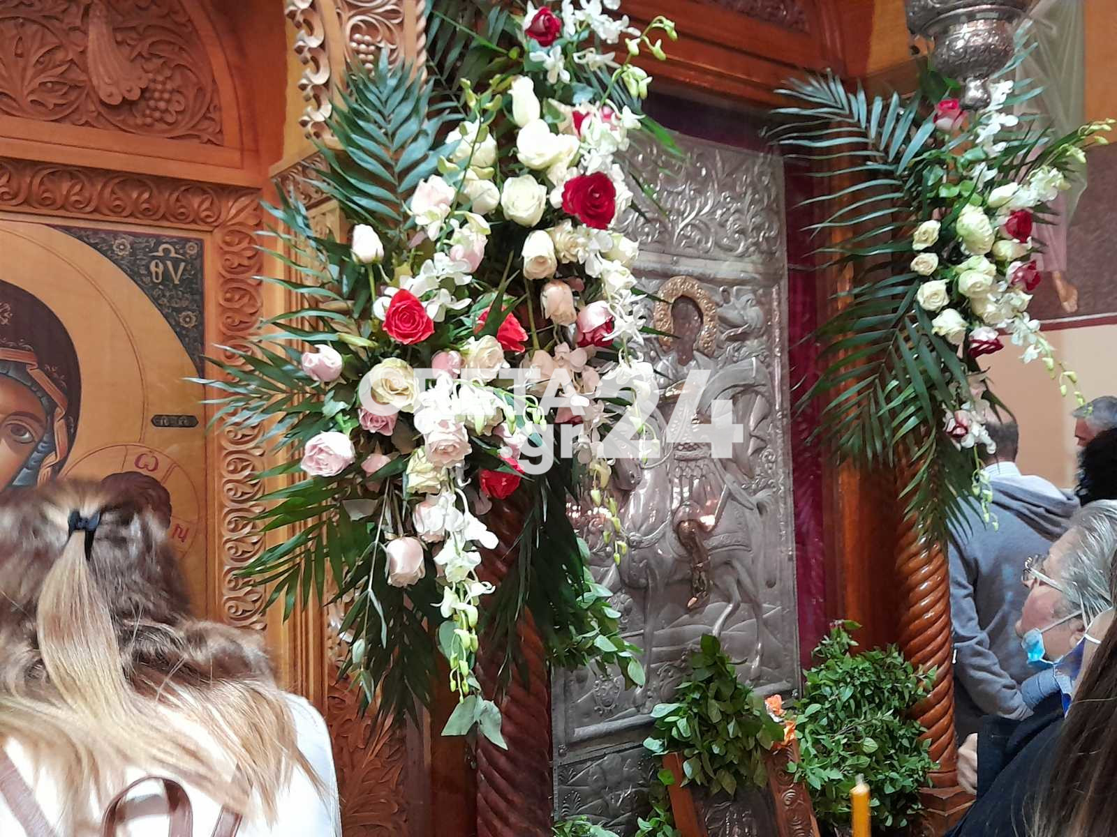 Το πρωί τελέστηκε Αρχιερατική Θεία Λειτουργία ενώ στη συνέχεια ακολούθησε λιτάνευση της εικόνας του Αγίου, με μια διαφορετική σε σχέση με τα προηγούμενα χρόνια πορεία λόγω των έργων που εκτελούνται στην 1821, περνώντας από την Κατεχάκη, την Λεωφόρο Καλοκαιρινού και επιστρέφοντας από την Αγίου Μηνά στο ναό.