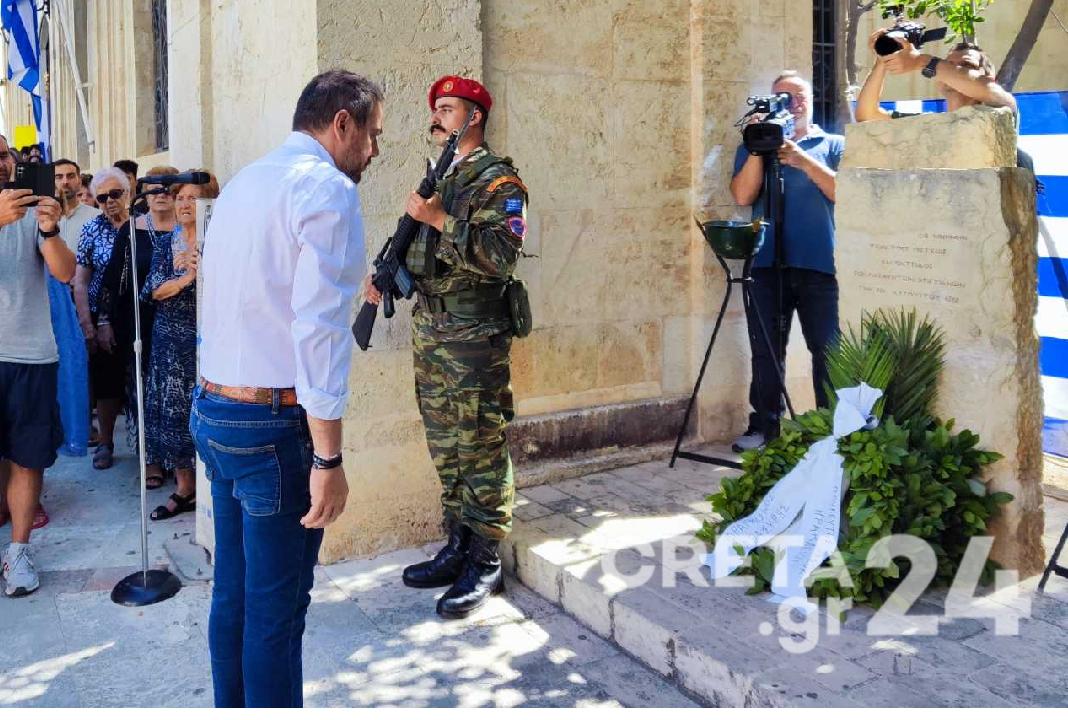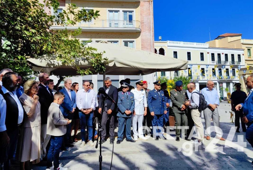 Είναι μια μέρα σημαντική, για την οποία πρέπει να επιστρέφουμε την σκέψη μας, διότι αυτή ήταν μια μέρα με πολύ βαρύ φόρο αίματος εδώ, ειδικά στην πόλη του Ηρακλείου. Το Ηράκλειο πλήρωσε έναν πολύ βαρύ φόρο αίματος για να φτάσουμε στην αυτονομία και στη συνέχεια στην εθνική ολοκλήρωση. Αυτό που ήταν και ο πόθος των Κρητικών, στη διάρκεια πολλών αιώνων.